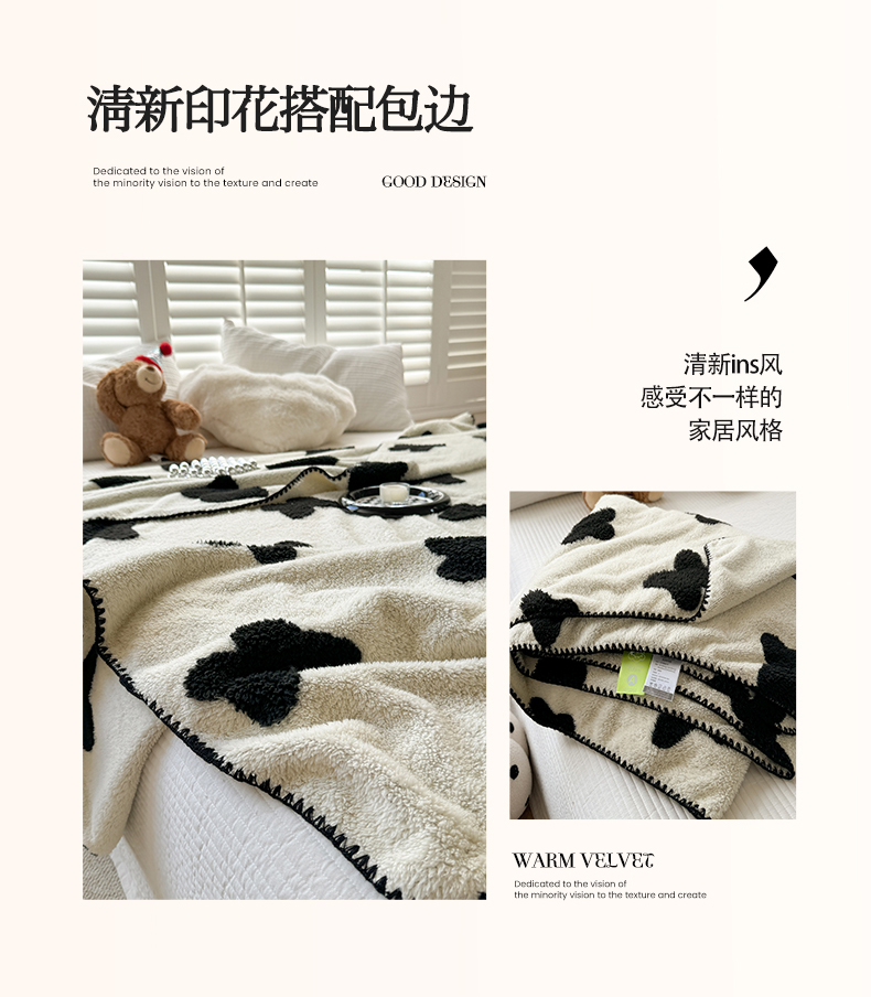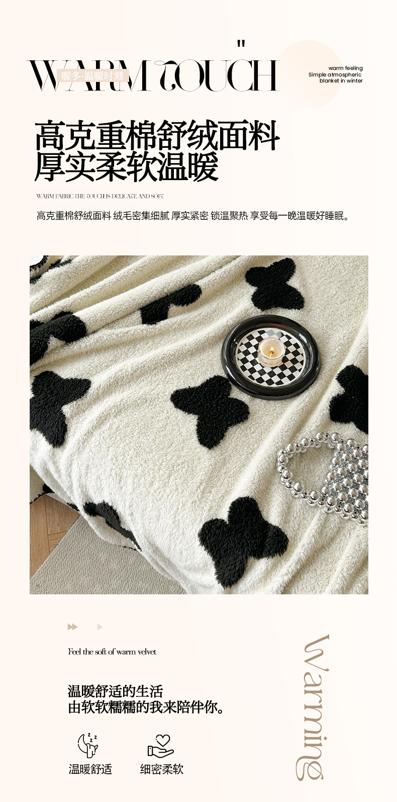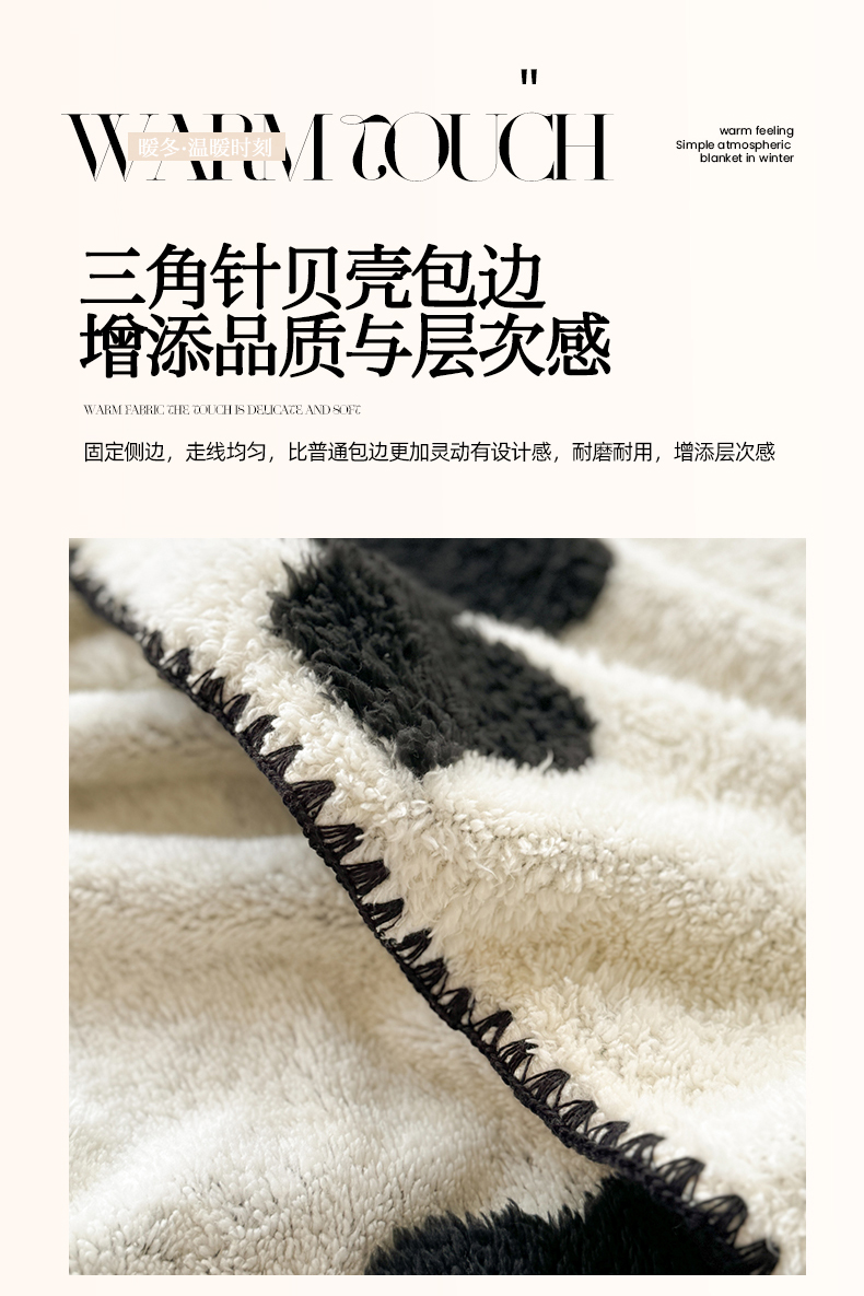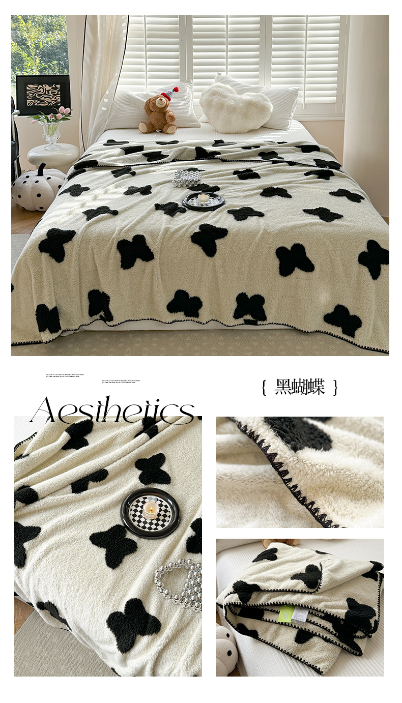 吉象家纺 2024新款A类高克重棉舒绒贝壳包边毛毯 黑蝴蝶