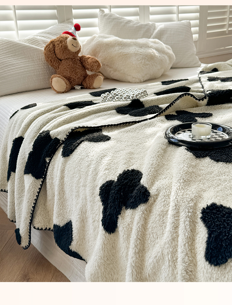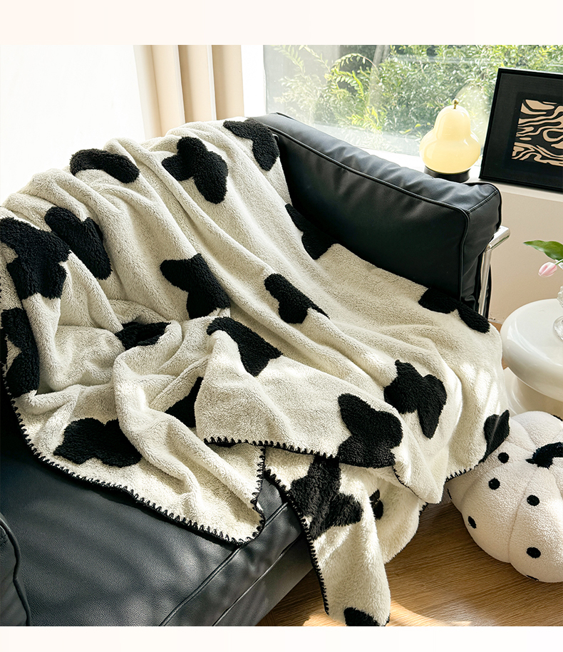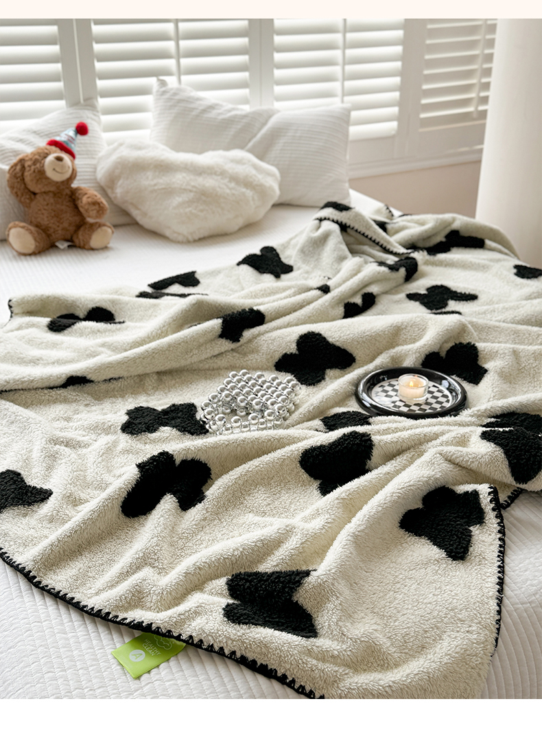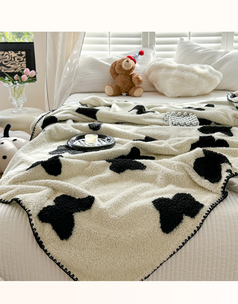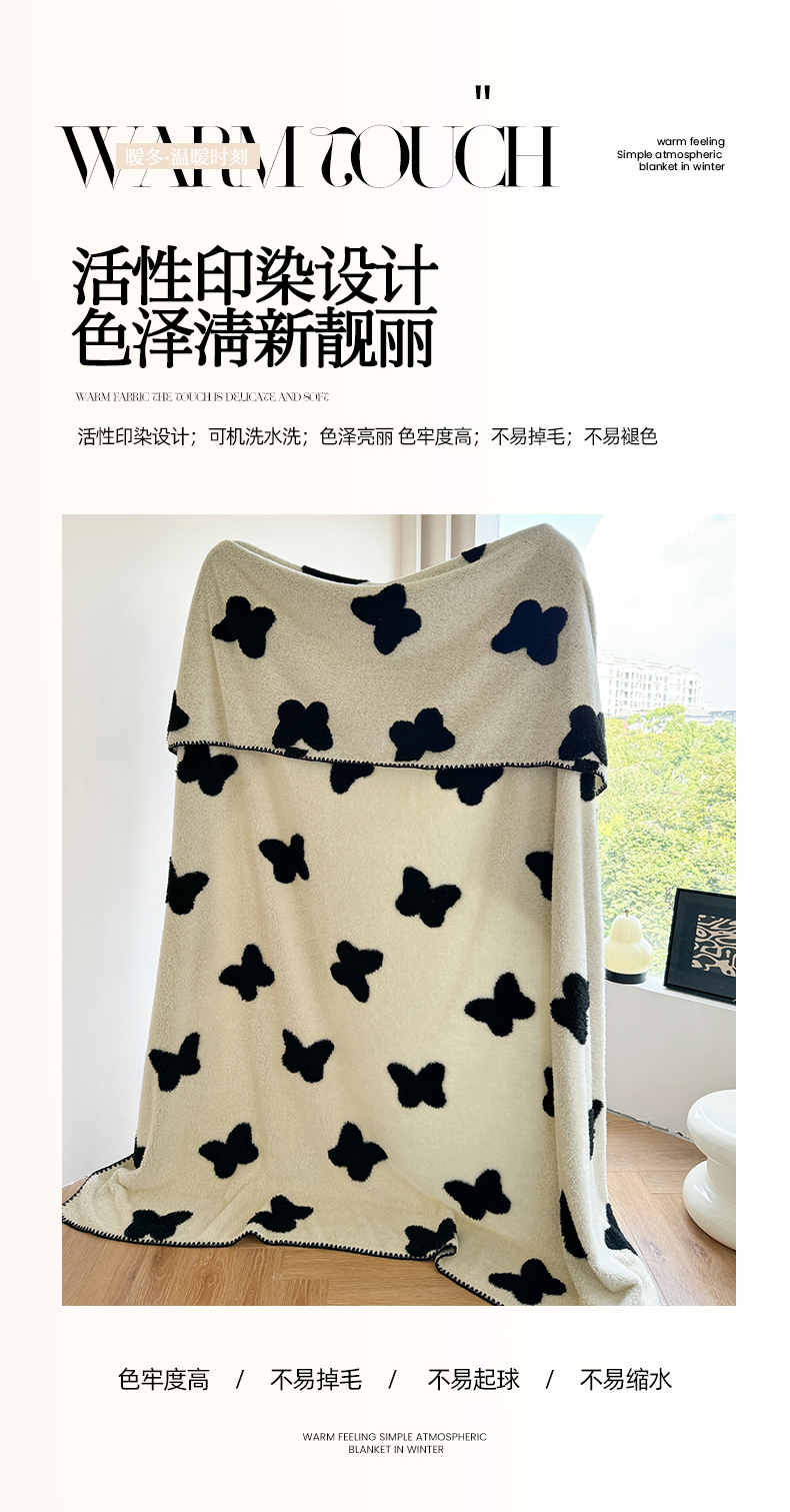 吉象家纺 2024新款A类高克重棉舒绒贝壳包边毛毯 黑蝴蝶