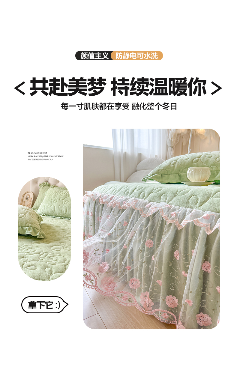 (总)恋尚 2025新款柔软牛奶绒保暖蕾丝床裙四件套-玫瑰故事(控价305),玫瑰故事-蜜桃粉,玫瑰故事-奶茶色,玫瑰故事-椰蓉灰,玫瑰故事-香芋紫,玫瑰故事-清新粉,玫瑰故事-香草绿