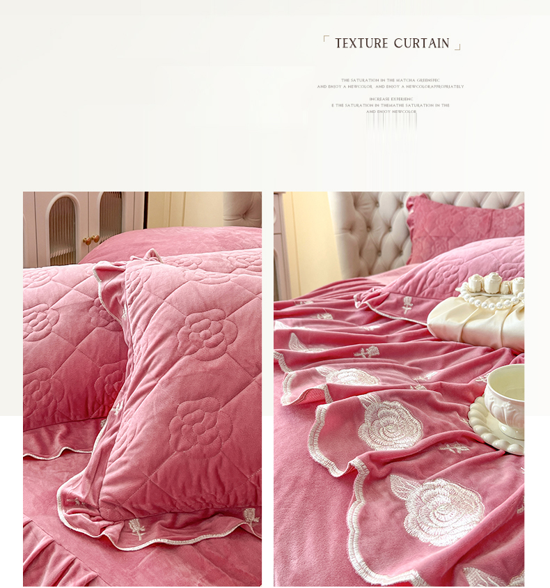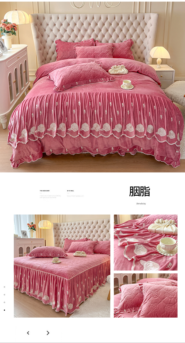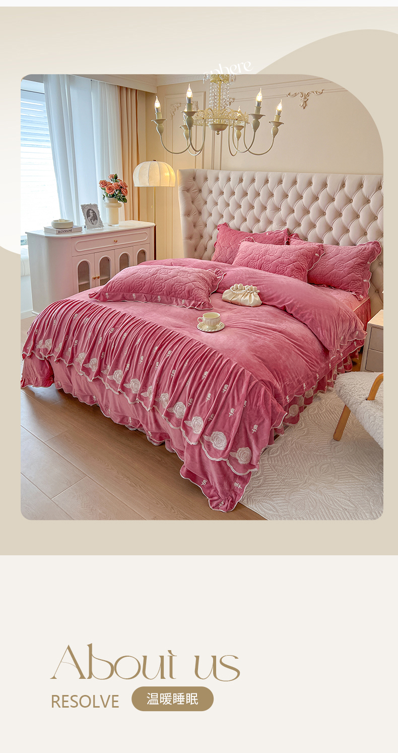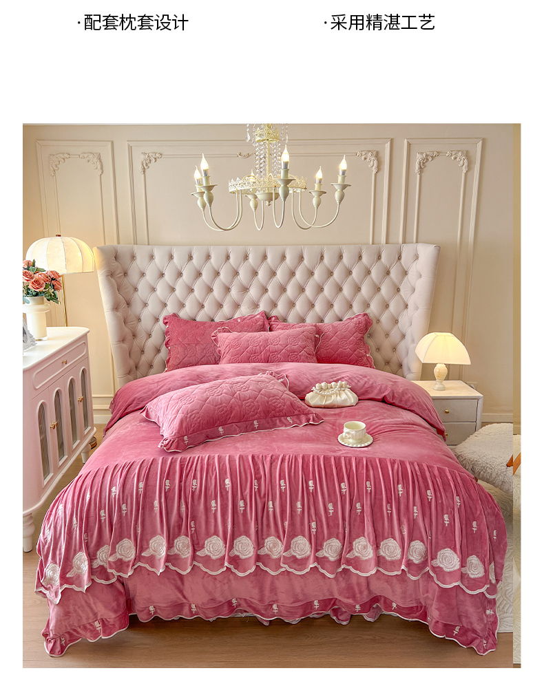 当前位置: 91家纺网 > 商品网购 > 床品套件 > 四件套 > 宝宝绒四件套 > 麒豆豆 2024新款宝宝绒床裙四件套-晨曦玫瑰 晨曦玫瑰-胭脂