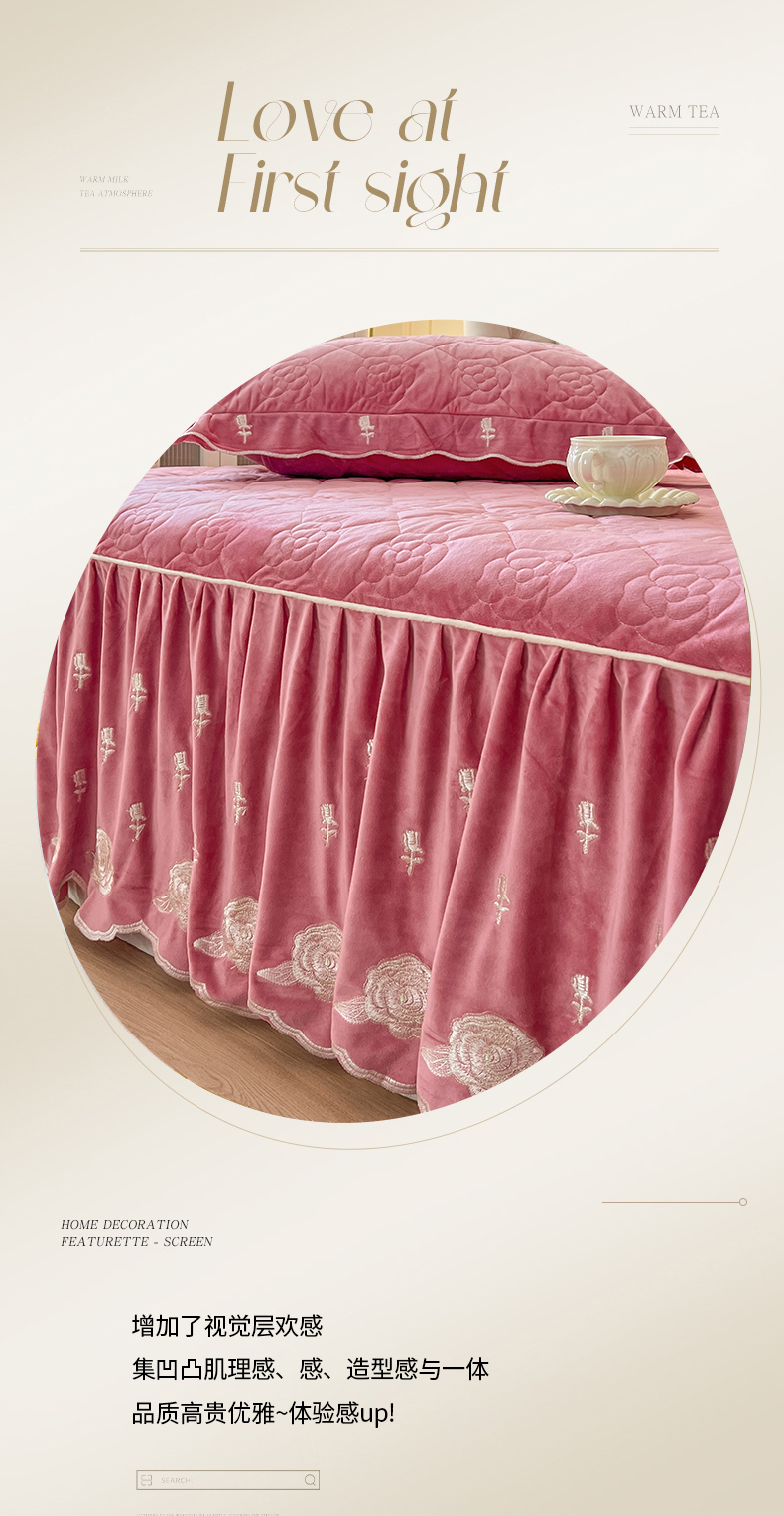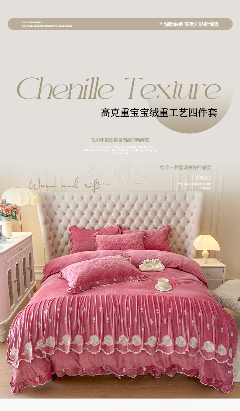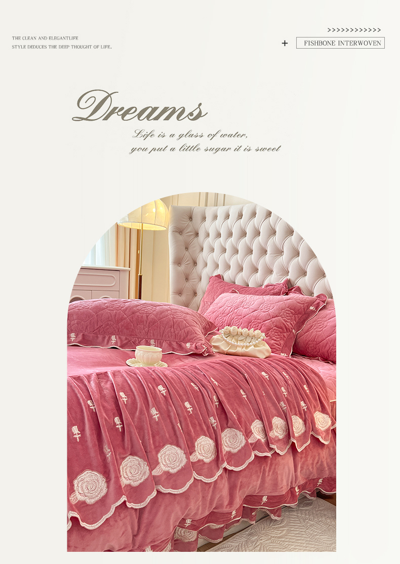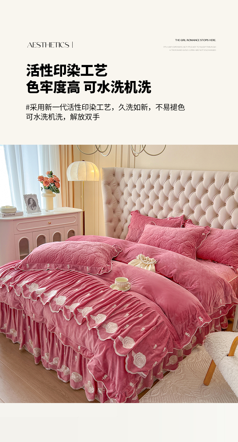 当前位置: 91家纺网 > 商品网购 > 床品套件 > 四件套 > 宝宝绒四件套 > 麒豆豆 2024新款宝宝绒床裙四件套-晨曦玫瑰 晨曦玫瑰-胭脂