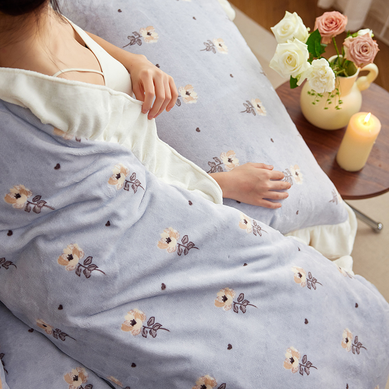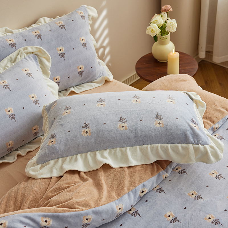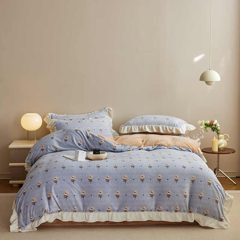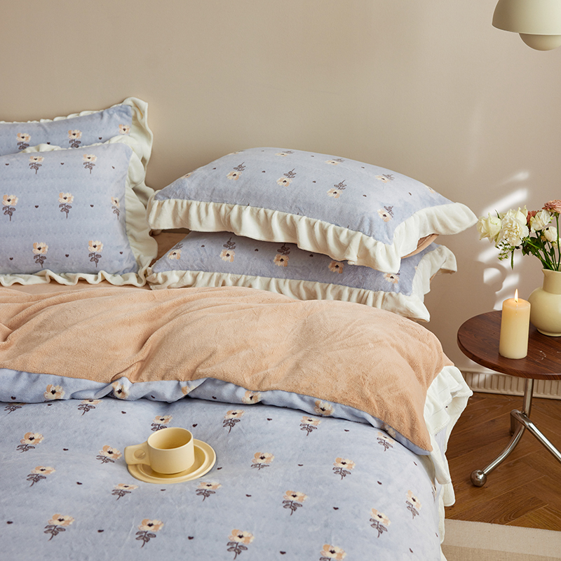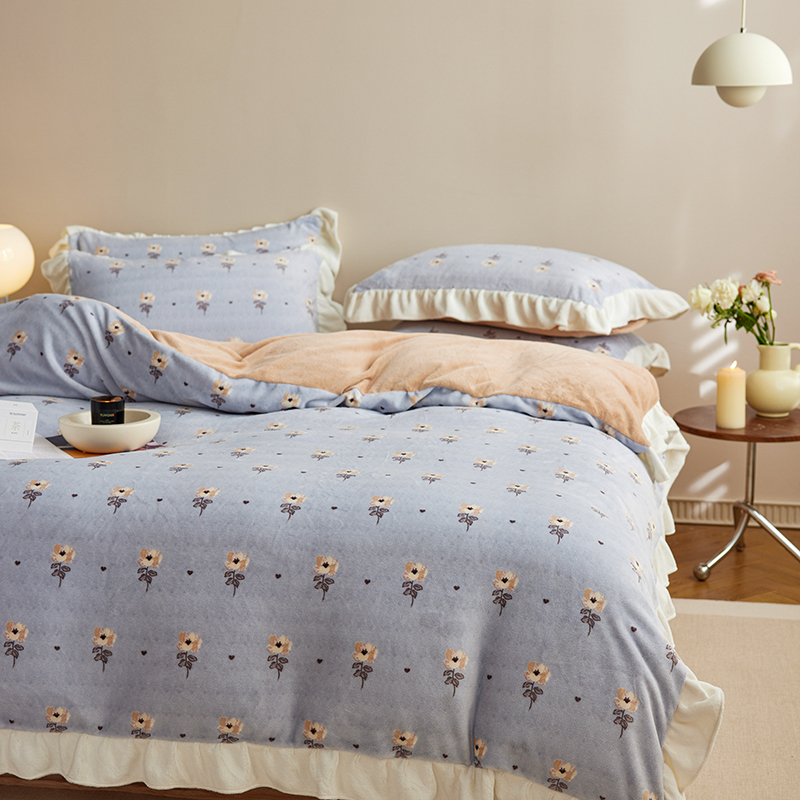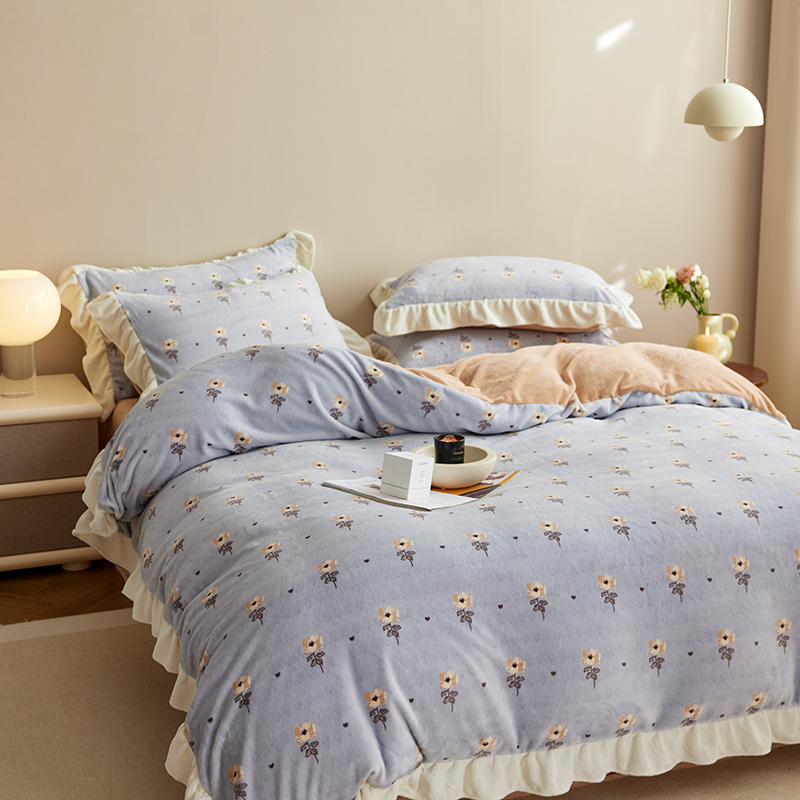 2024新款240g全消光印花花边绒四件套 繁花