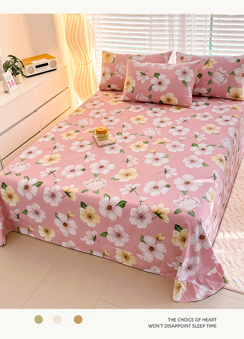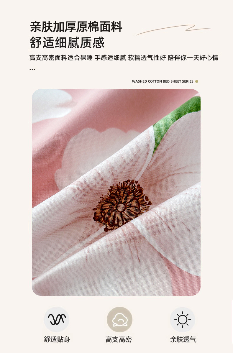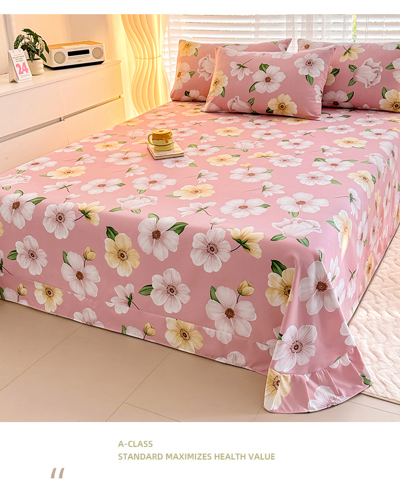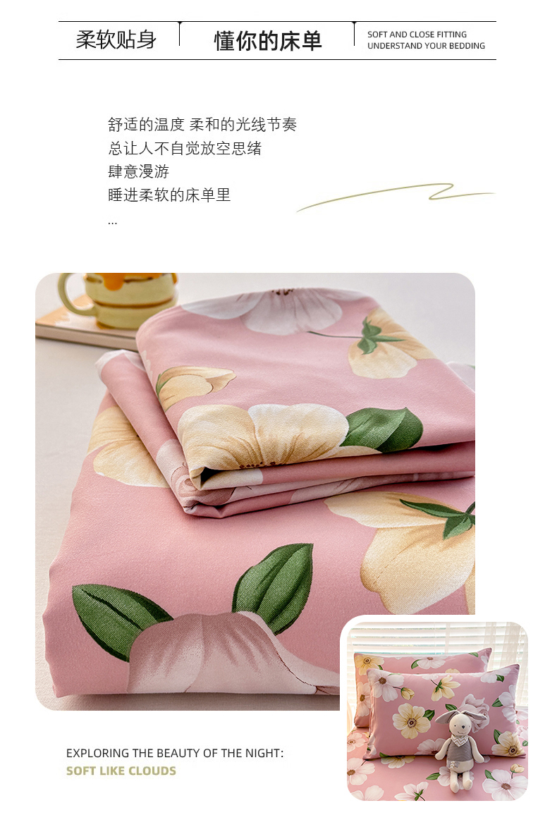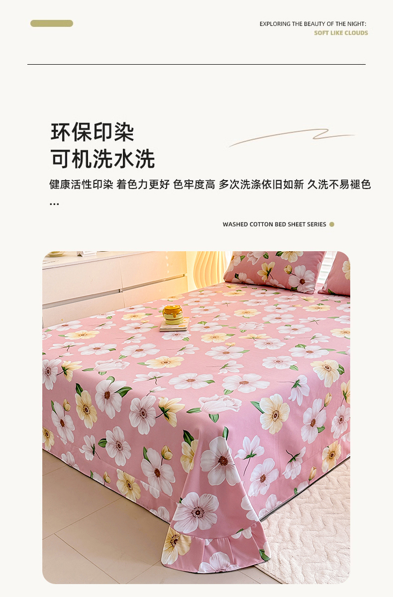 • 91家纺网 家纺一手货源 找家纺 家贝爱 2024新款加厚原棉磨毛花边床单 粉朵花颂