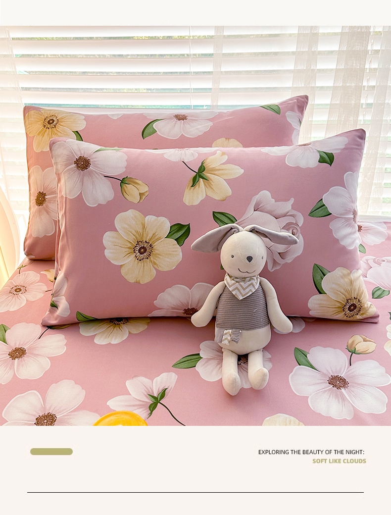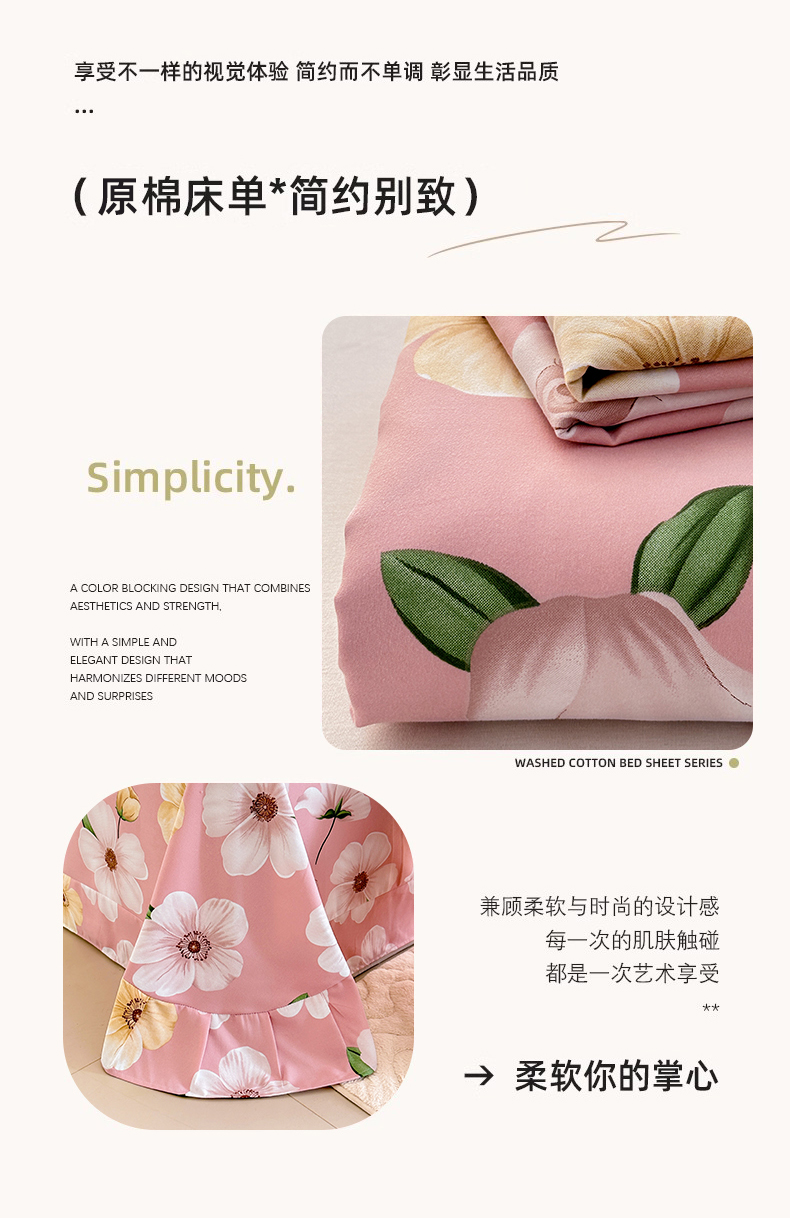 家贝爱 2024新款加厚原棉磨毛花边床单 粉朵花颂