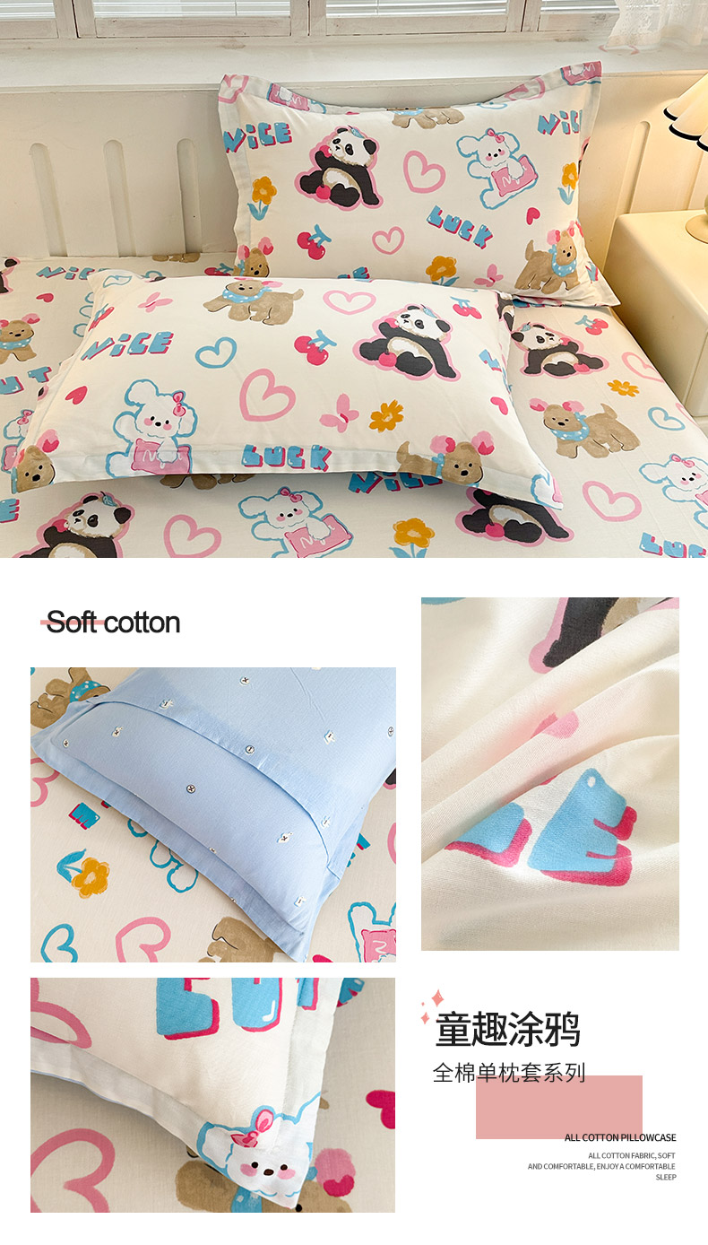 绵庭家纺 2025新款全棉印花单枕套系列 童趣涂鸦