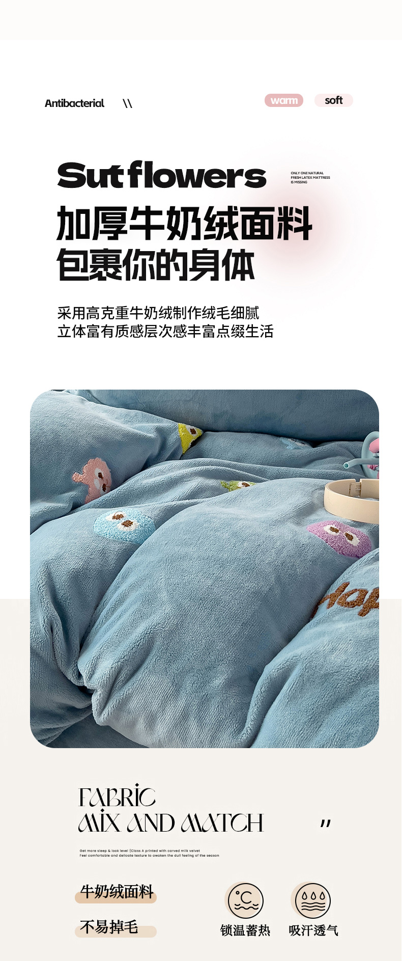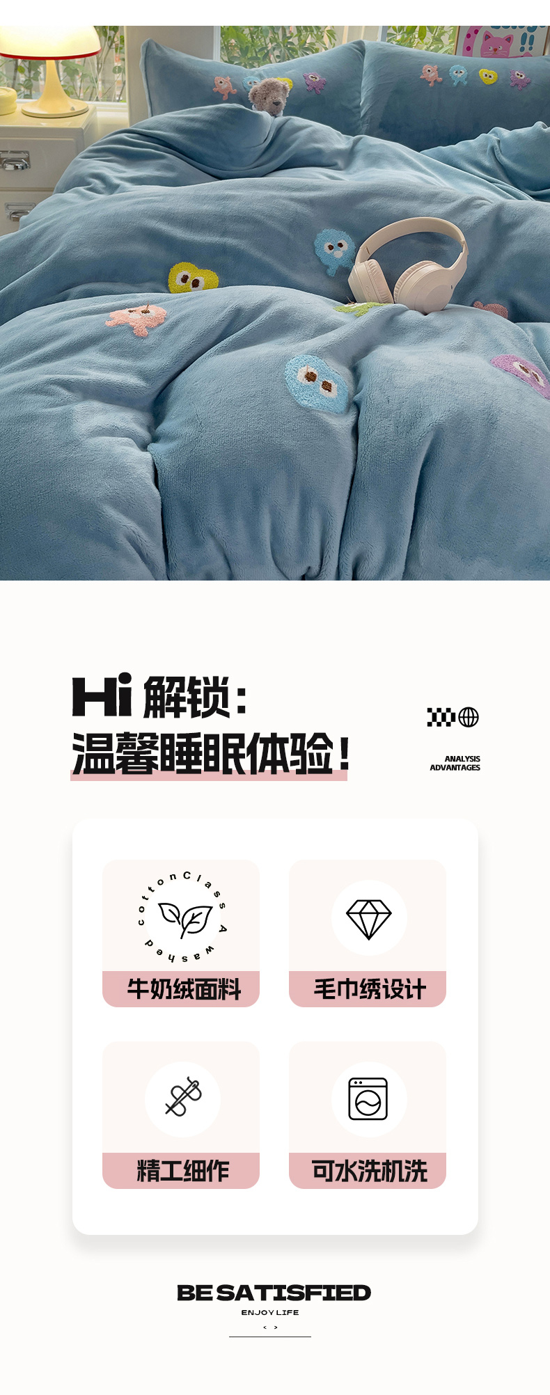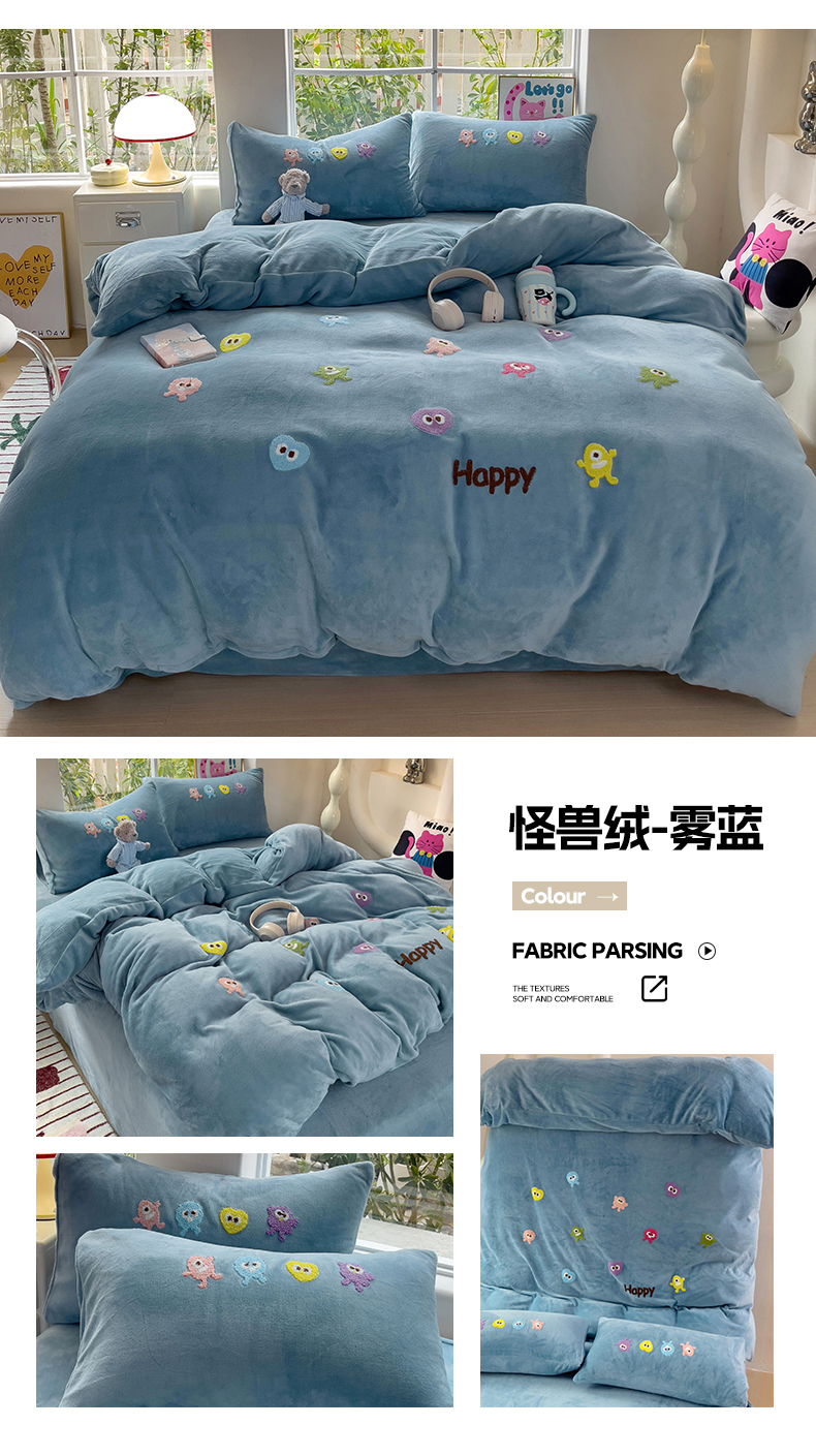 水墨江南 2024新款怪兽绒系列牛奶绒毛巾绣四件套 怪兽绒-雾蓝
