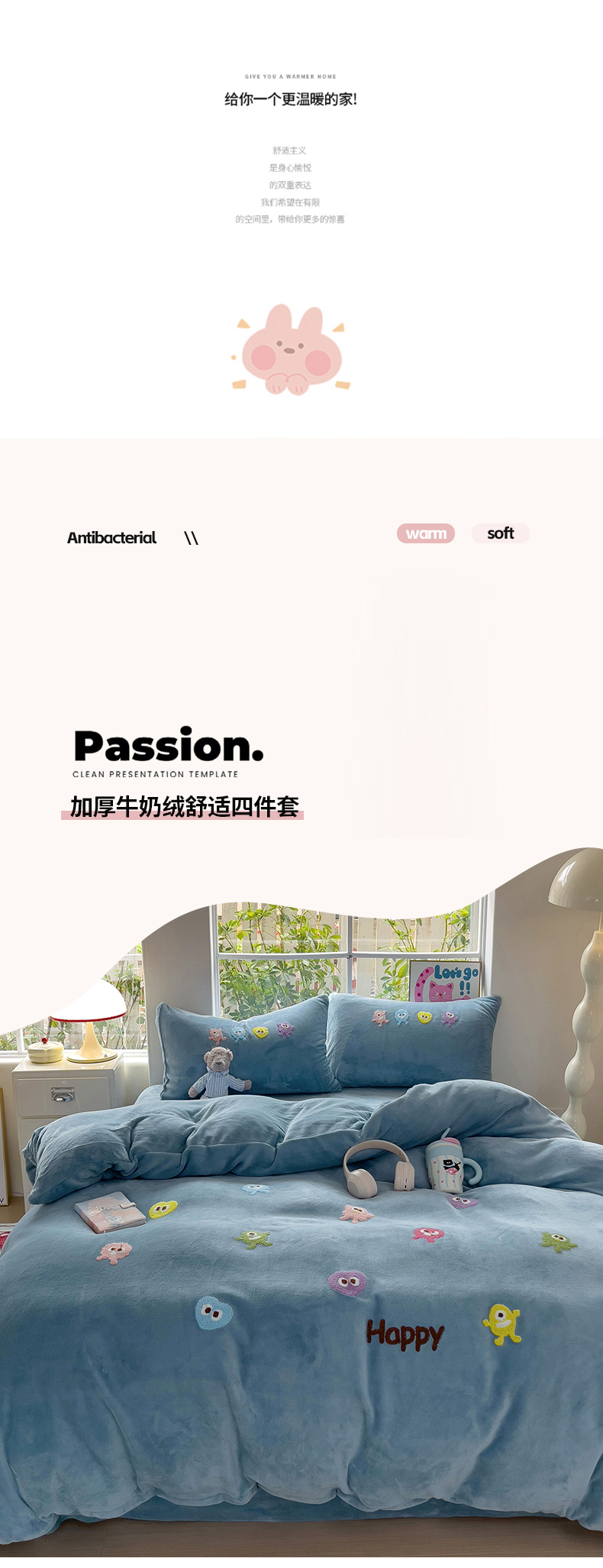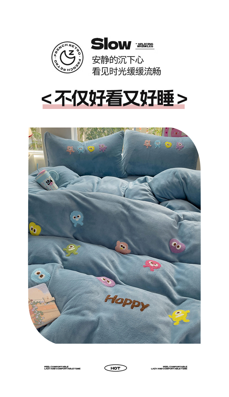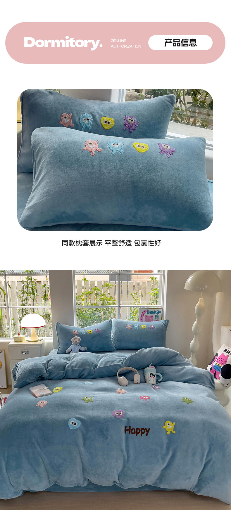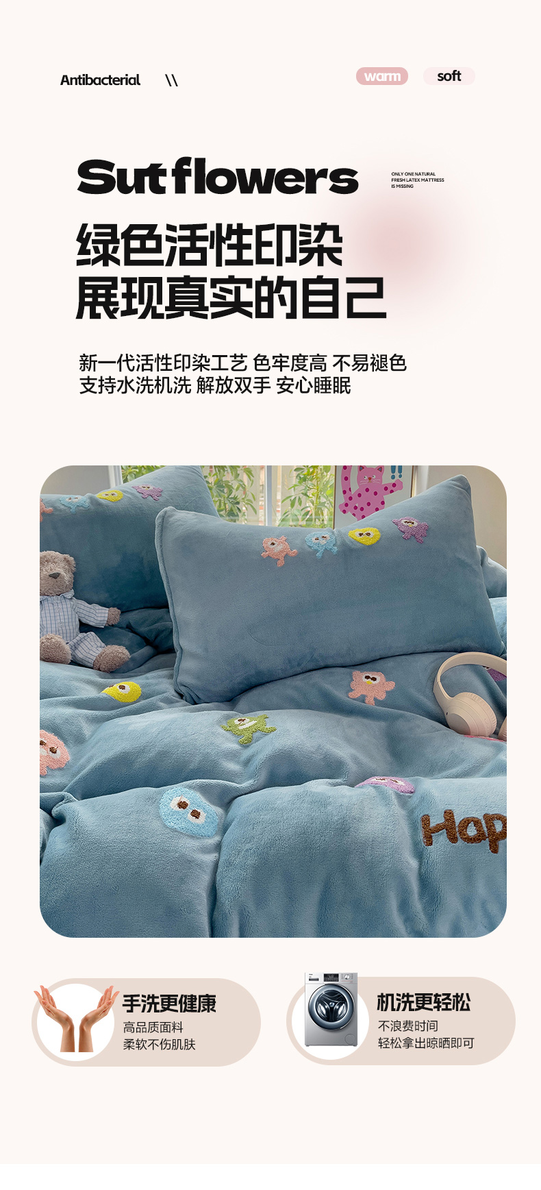 水墨江南 2024新款怪兽绒系列牛奶绒毛巾绣四件套 怪兽绒-雾蓝