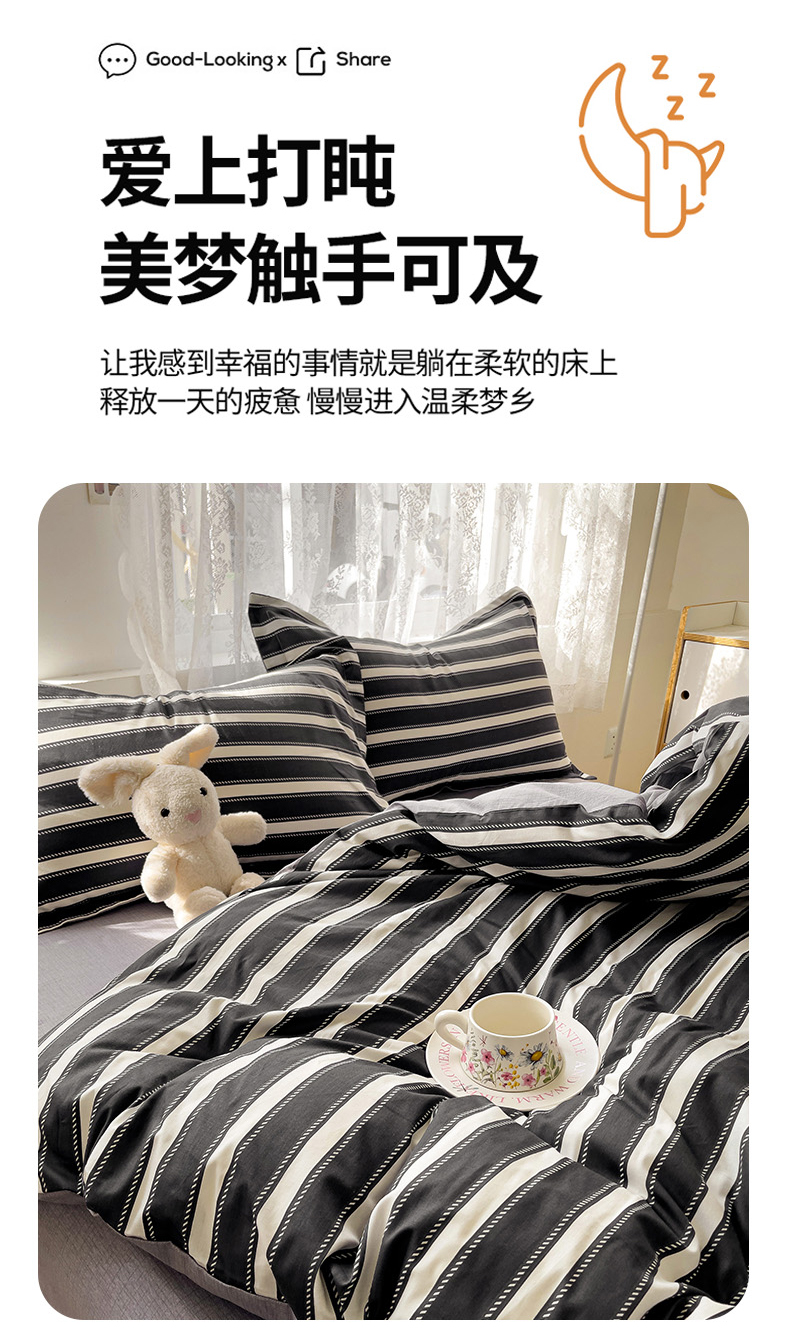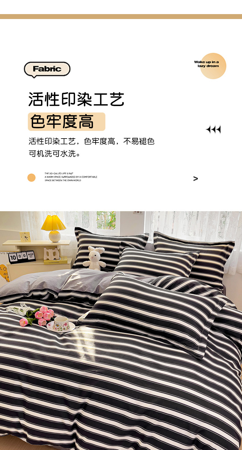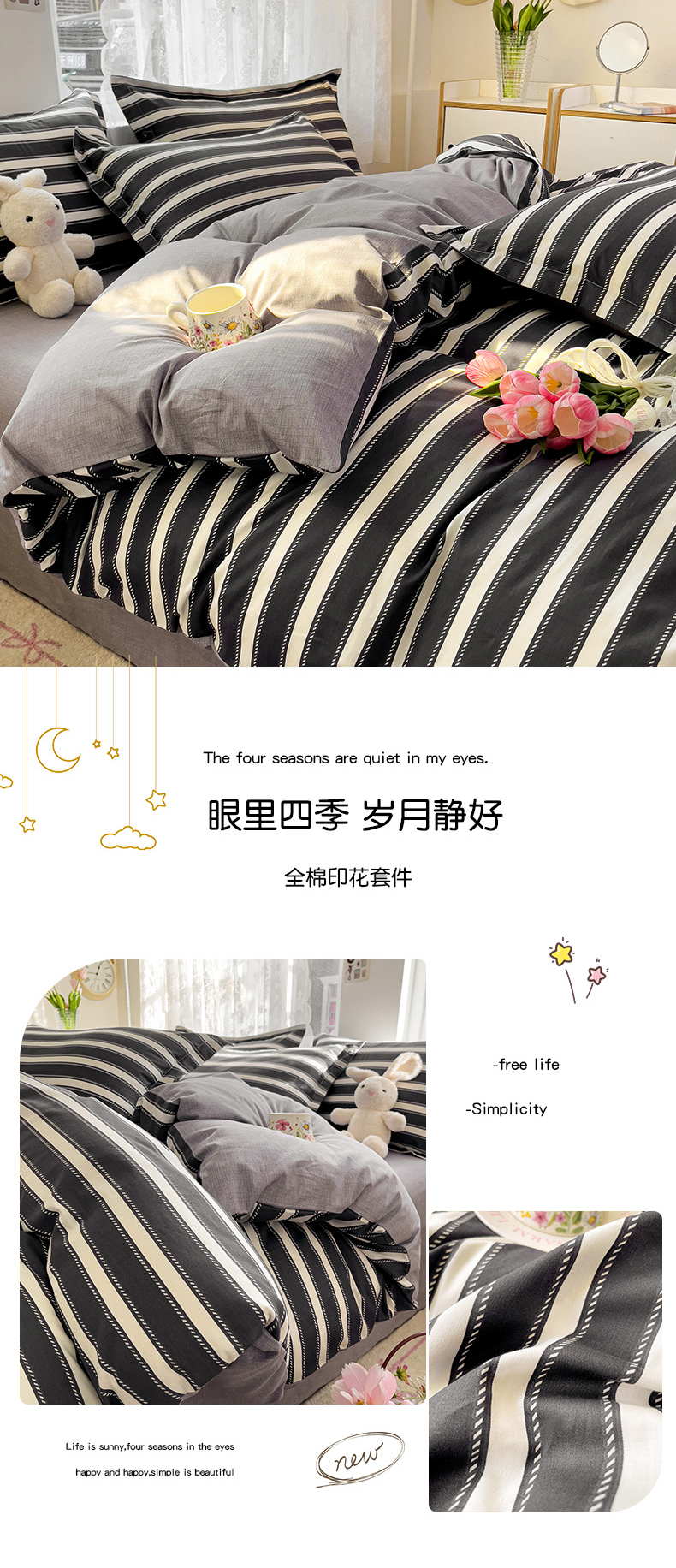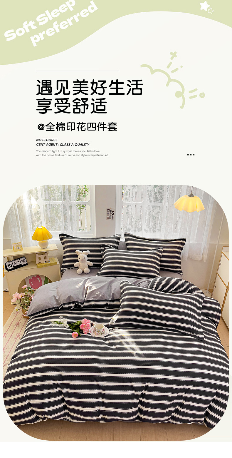 优选良品 2025新款直播爆款全棉-ins印花系列四件套纯棉三件套床单床笠条纹空间