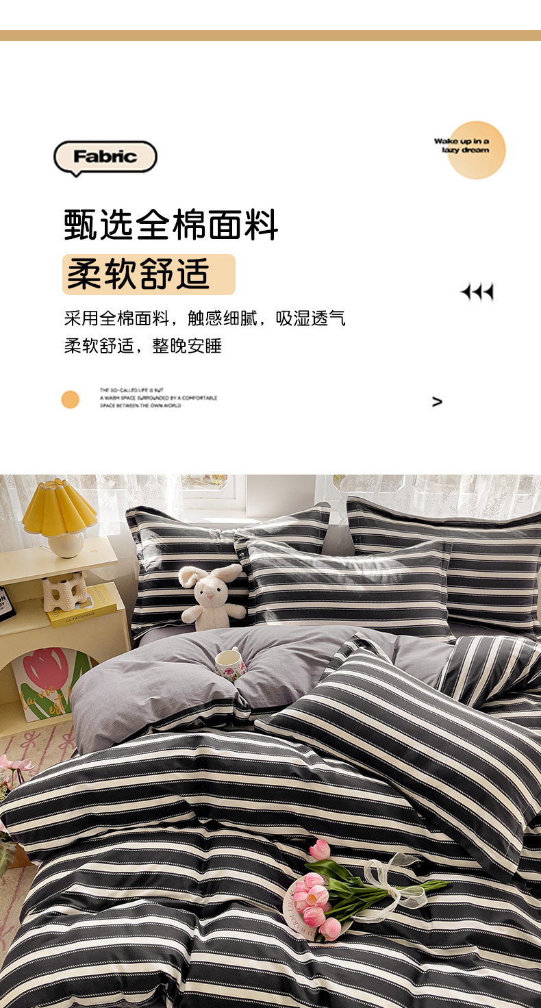 商品名称:优选良品 2025新款直播爆款全棉-ins印花系列四件套纯棉三件套床单床笠条纹空间
