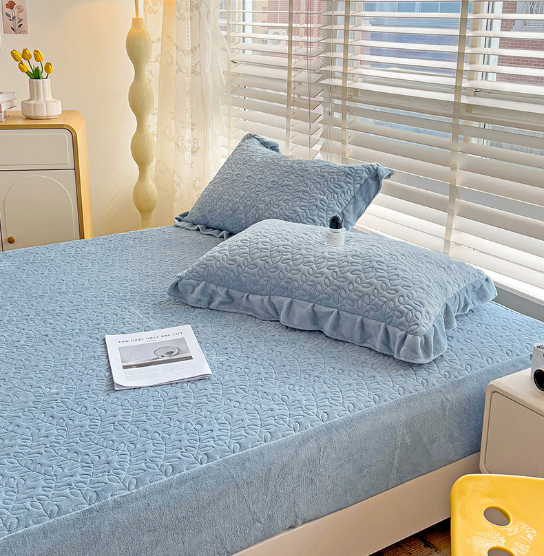 漫时光 2025新款230g纯色牛奶绒夹棉床笠 床笠款罗曼-宝石蓝