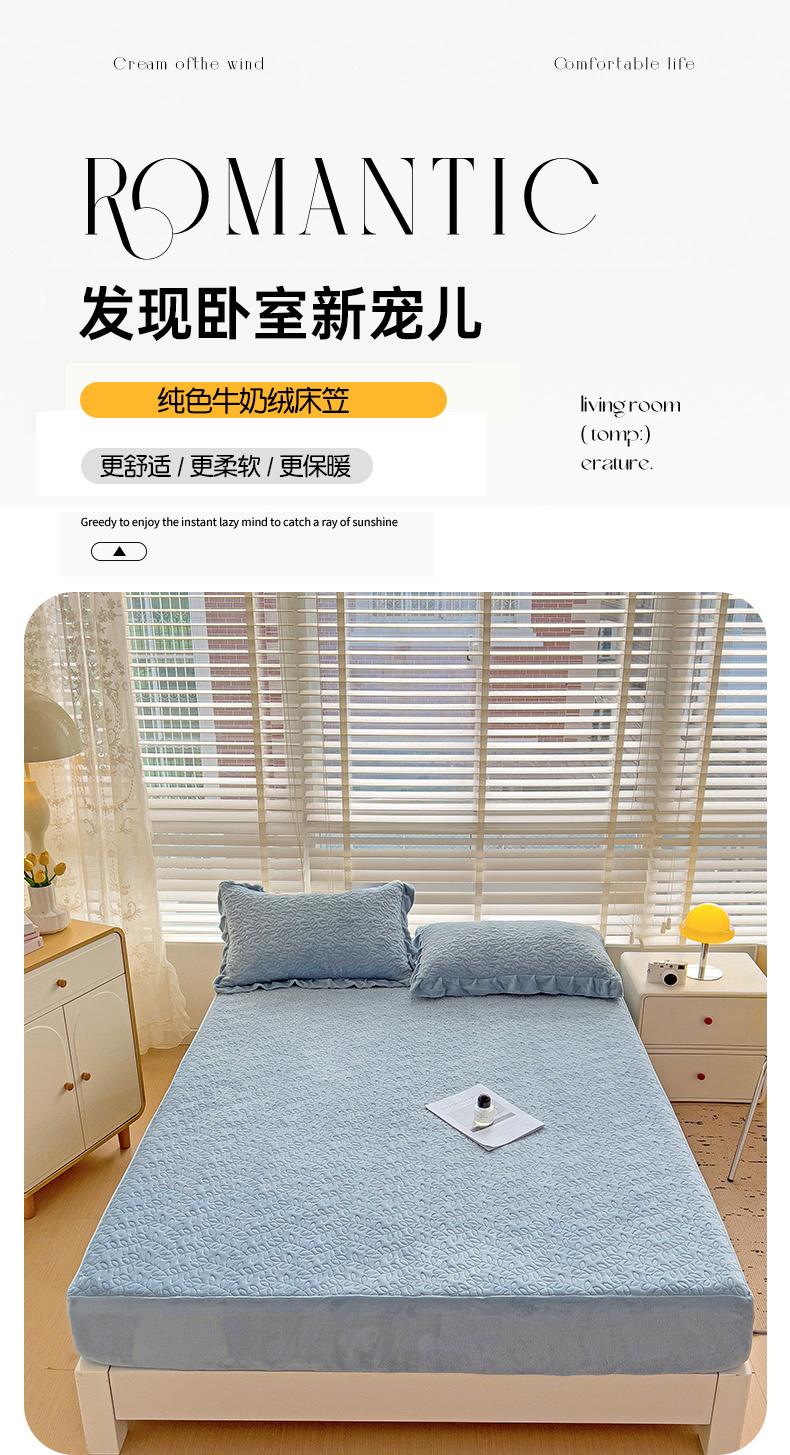 商品名称:漫时光 2025新款230g纯色牛奶绒夹棉床笠 床笠款罗曼-宝石蓝