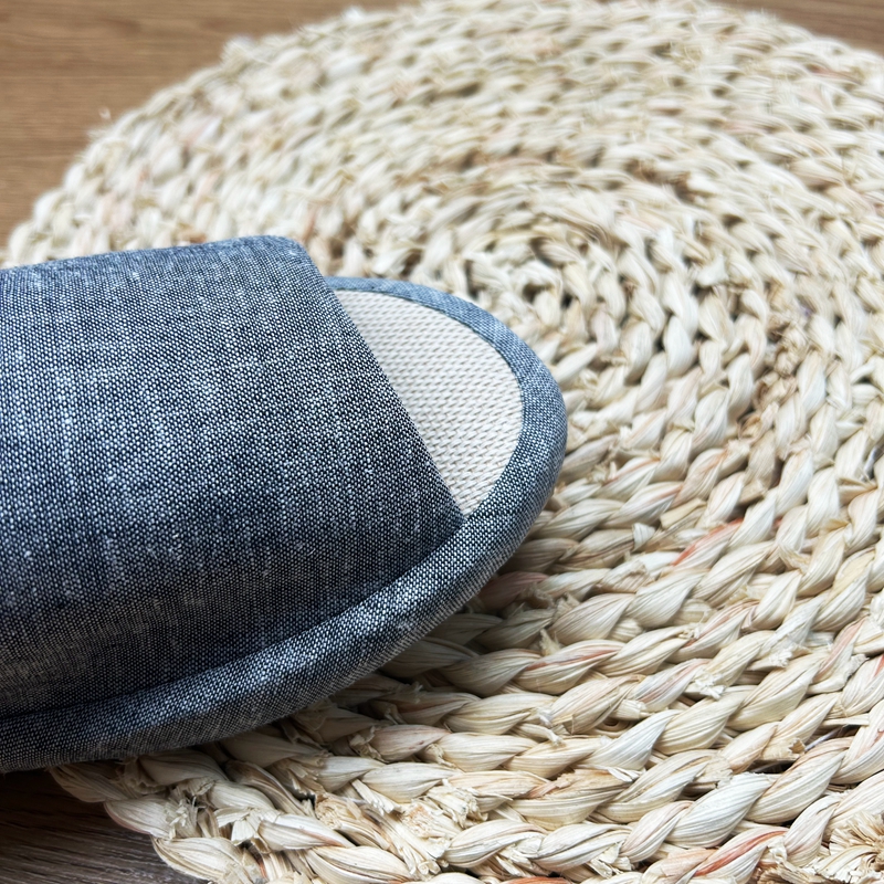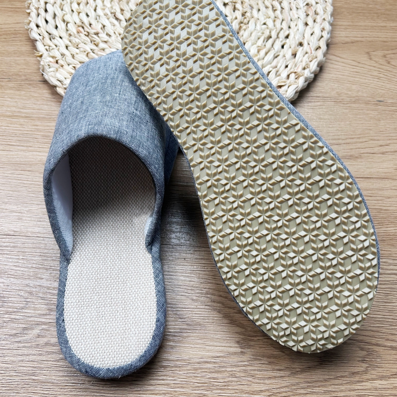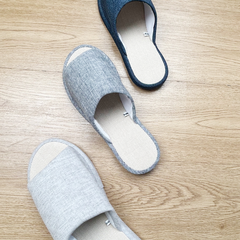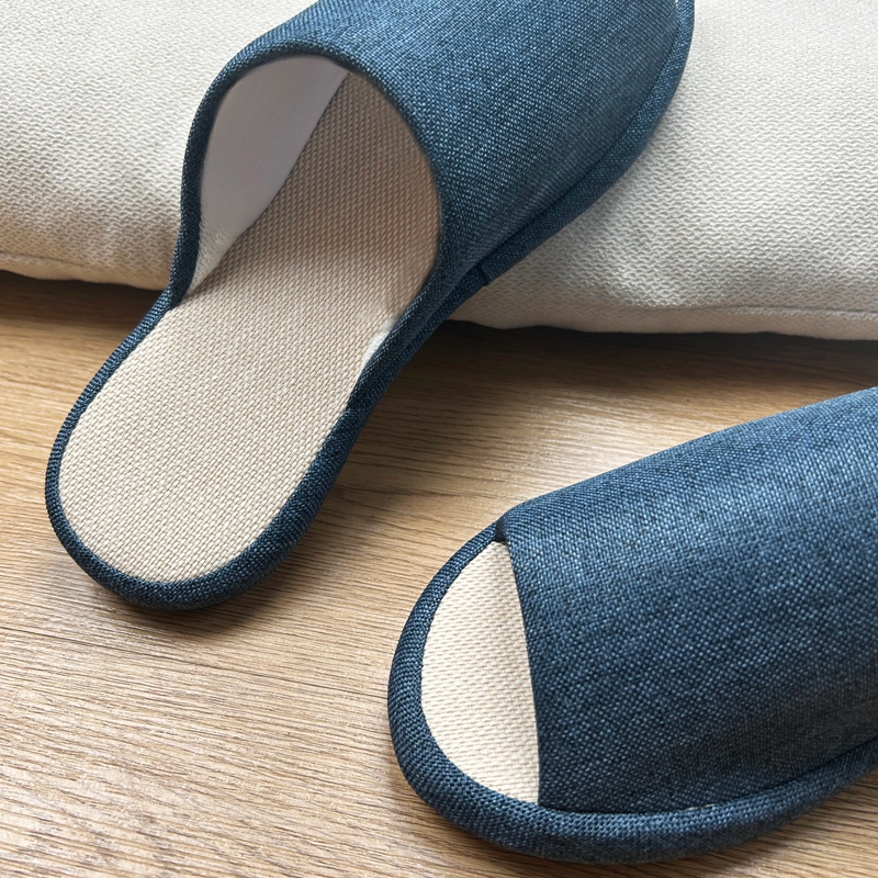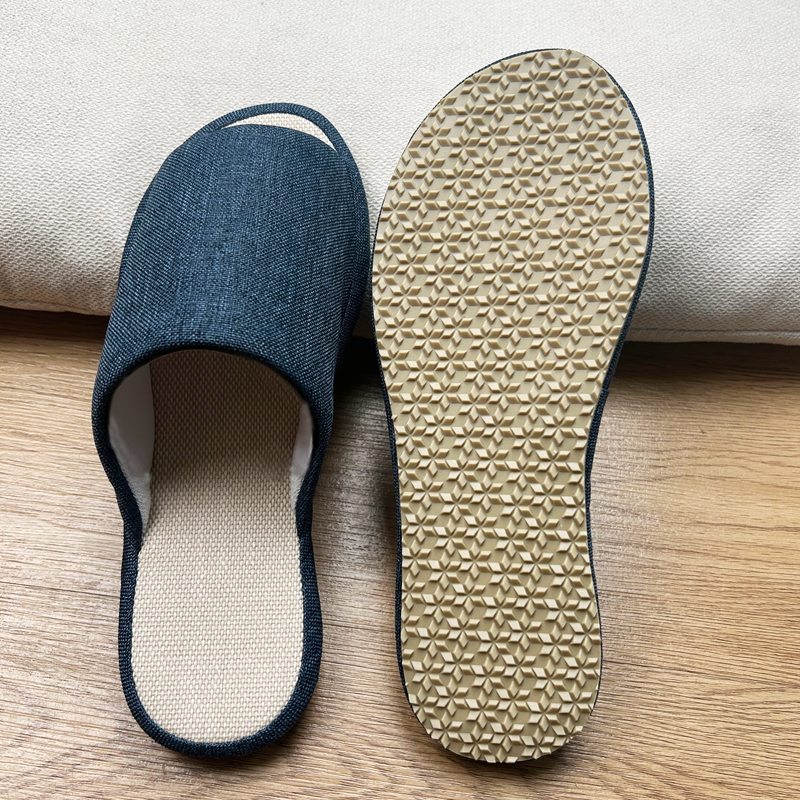 (总)南通盟生鞋业有限公司 2024新款日式素色TPR防滑静音软底棉麻四季室内家居开口拖鞋