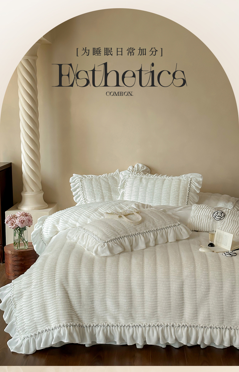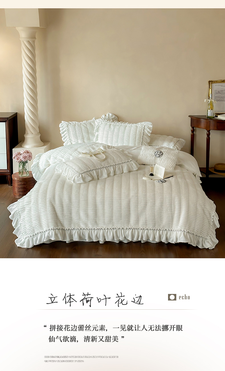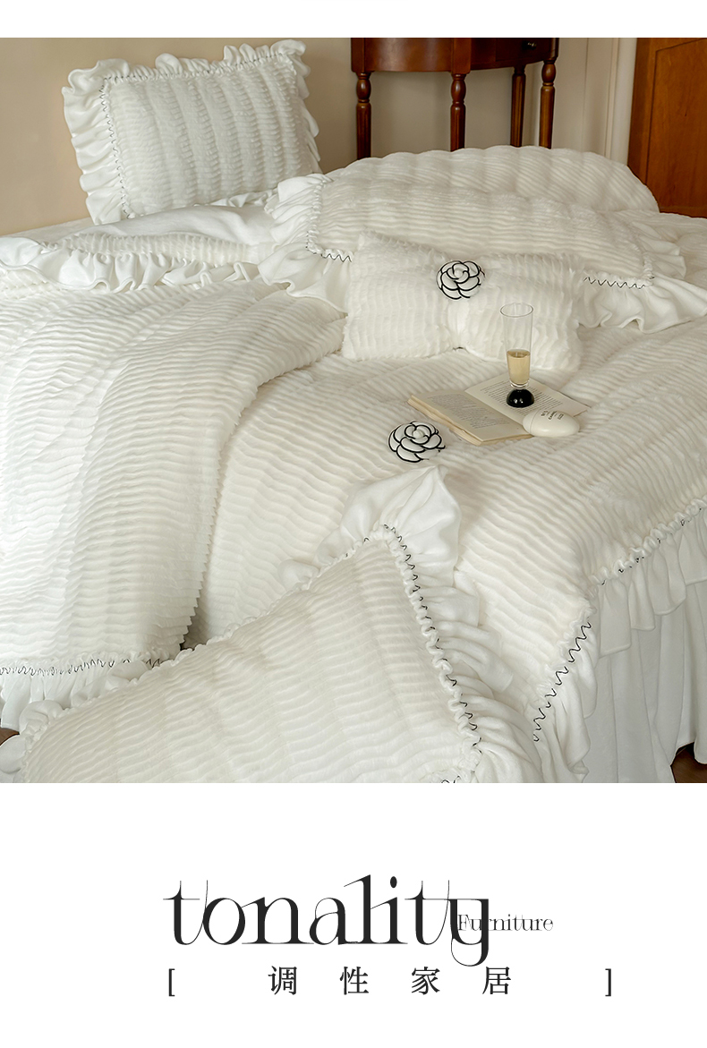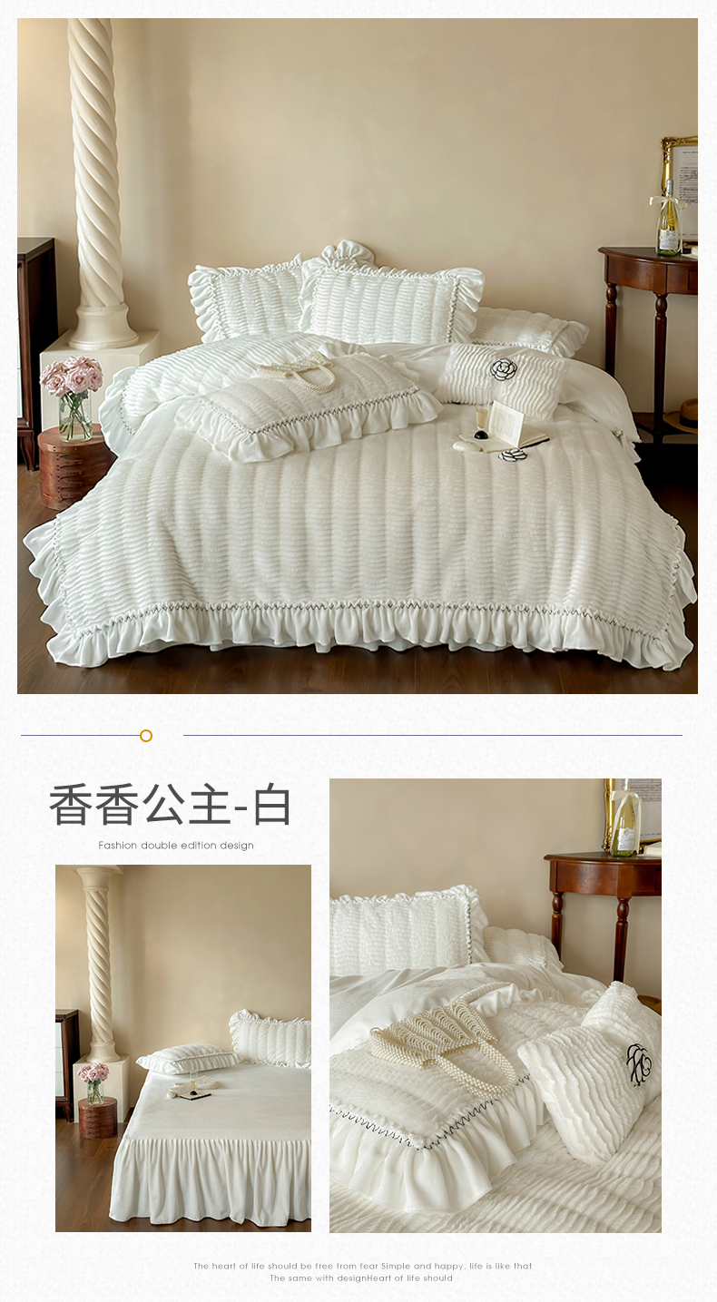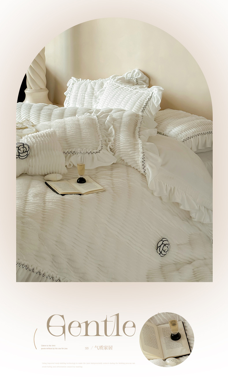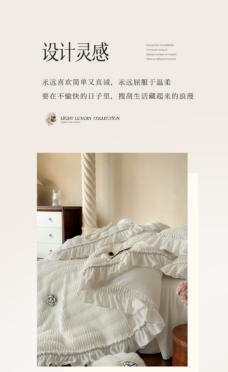当前位置: 91家纺网 > 商品网购 > 床品套件 > 四件套 > 兔毛绒四件套 > 婳庭家居 2024新款山茶花兔兔绒牛奶绒四件套-香香公主 香香公主-白