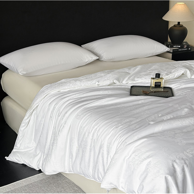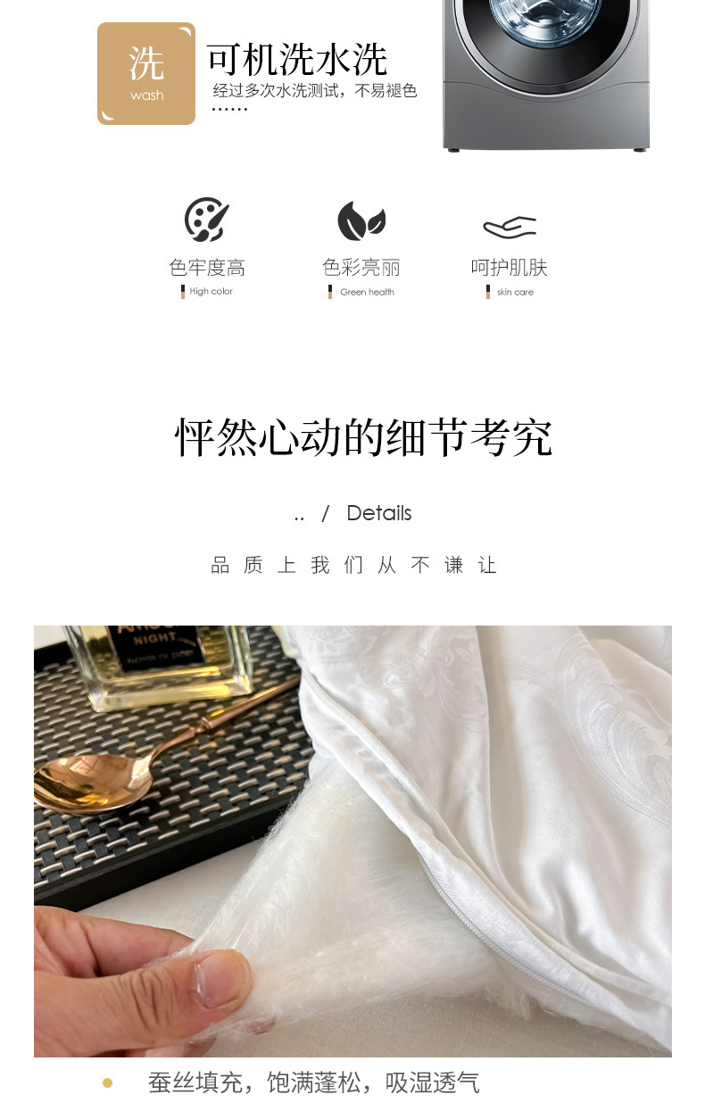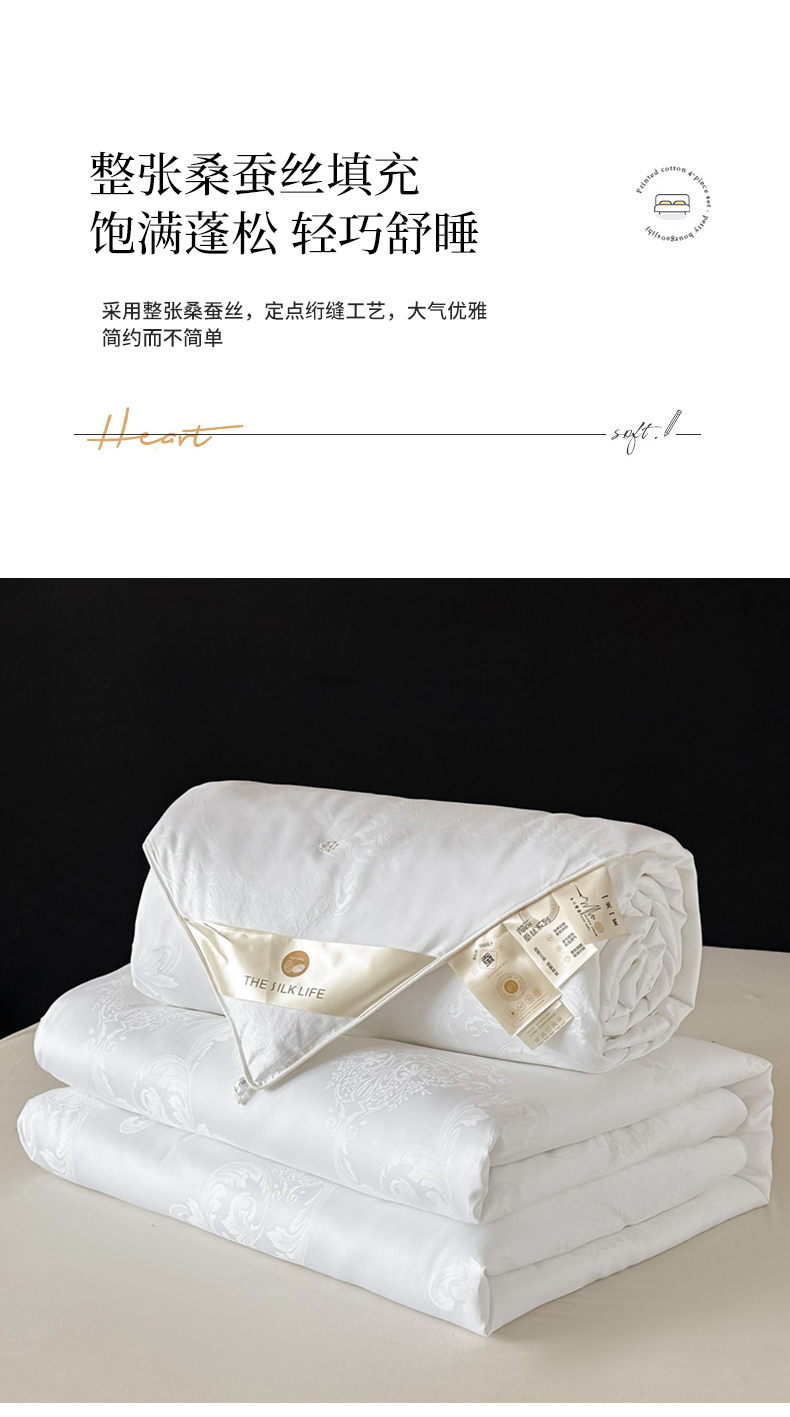 商品名称:龙图家纺 2024新款80支全棉贡缎蚕丝被-玉如意 玉如意-白色