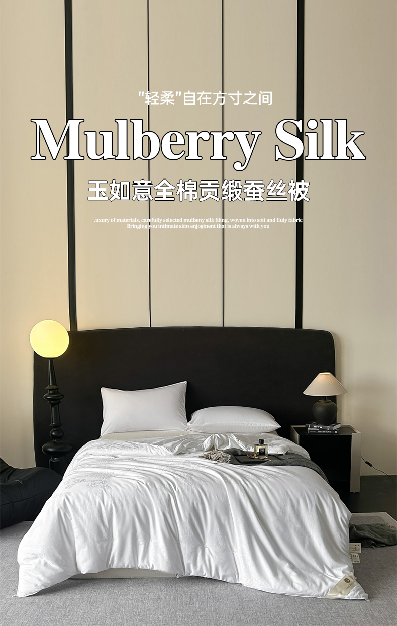 龙图家纺 2024新款80支全棉贡缎蚕丝被-玉如意 玉如意-白色