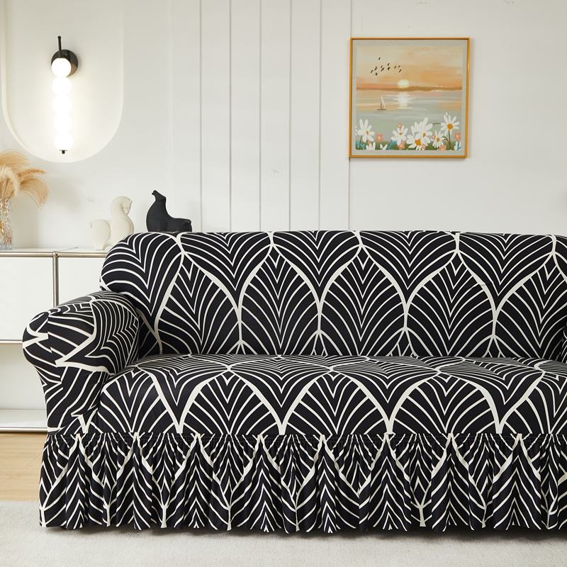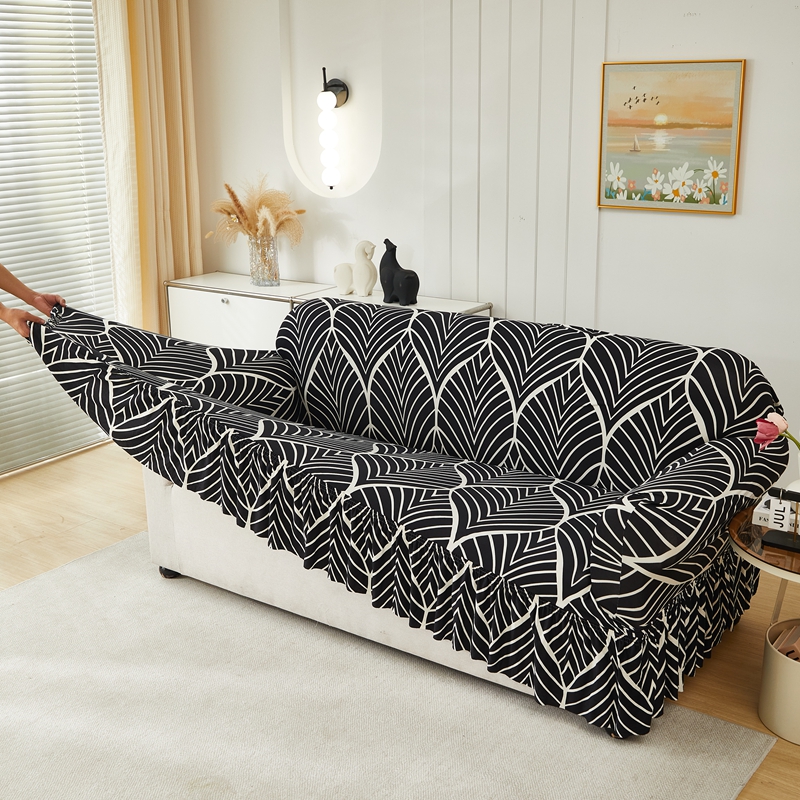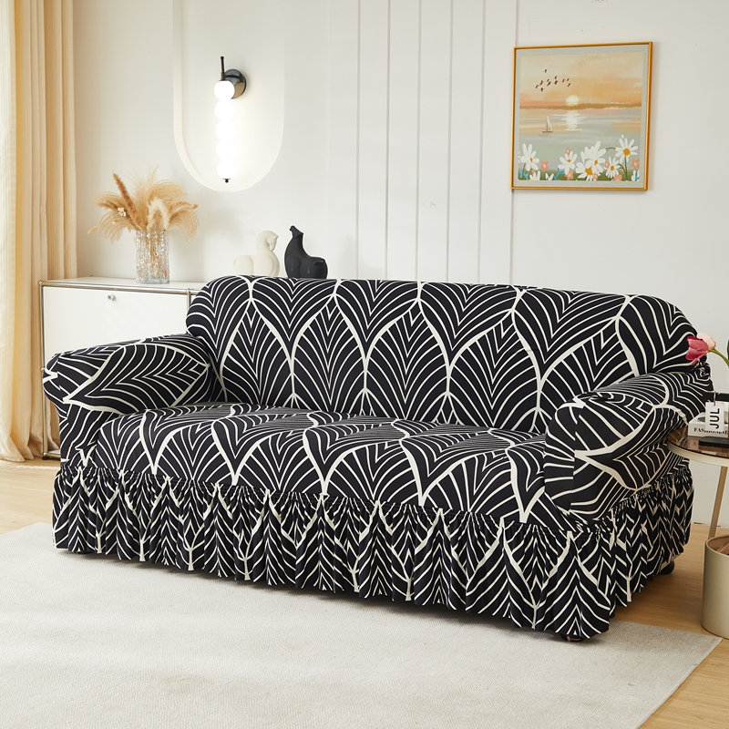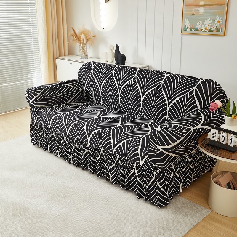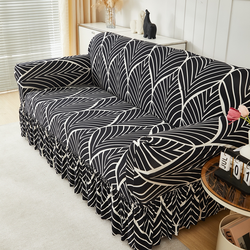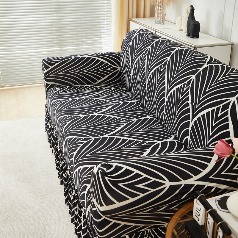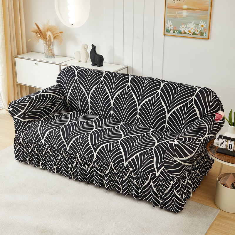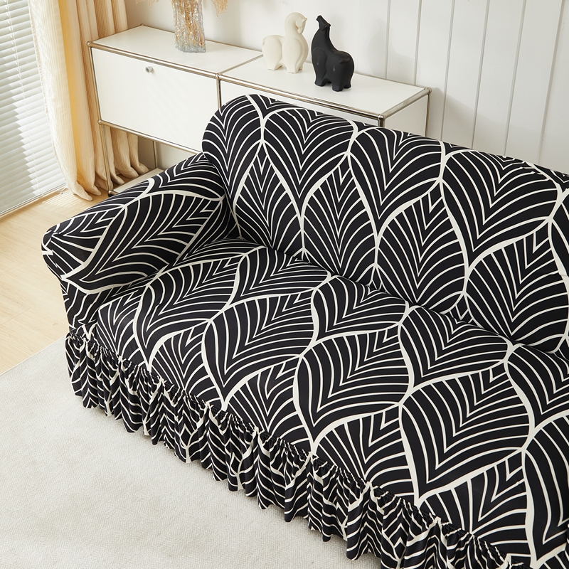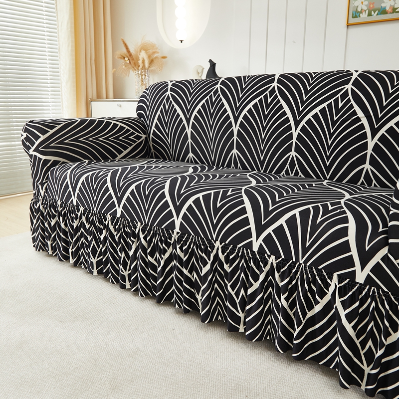 飞翔家纺 2024新款花边裙摆沙发套 裙摆-枫叶黑