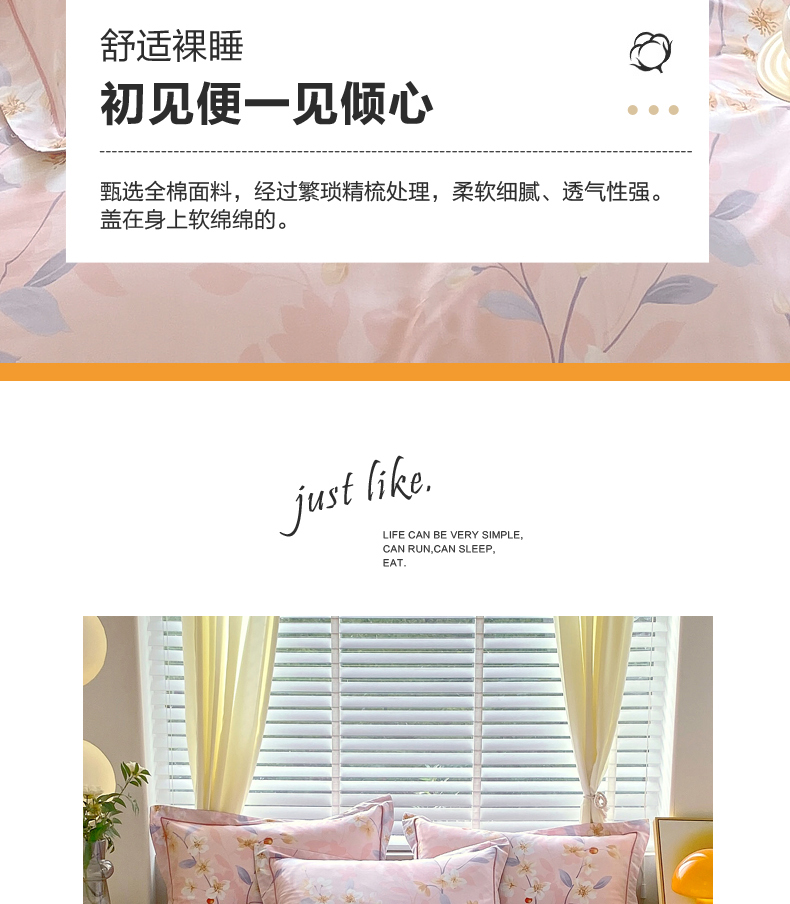 当前位置: 91家纺网 > 商品网购 > 床品套件 > 四件套 > 全棉普通四件套 > 星期三家纺 2024年12月新款铂金全棉13372四件套(加老板微信有会员价)(加老板微信有会员价) 杏绘-粉