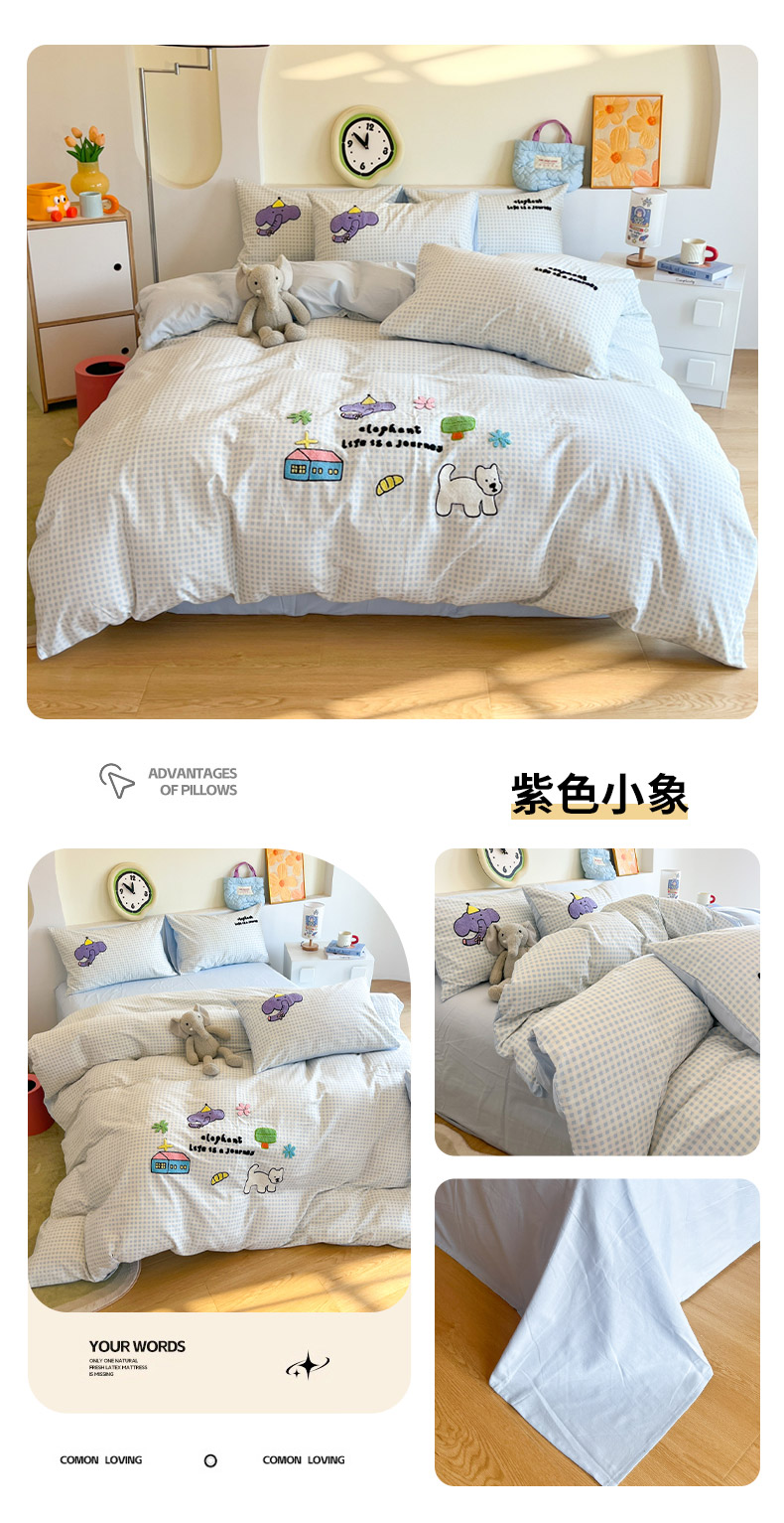 商品名称:千朵 2024新款全棉磨毛绣花毛巾绣四件套 紫色小象