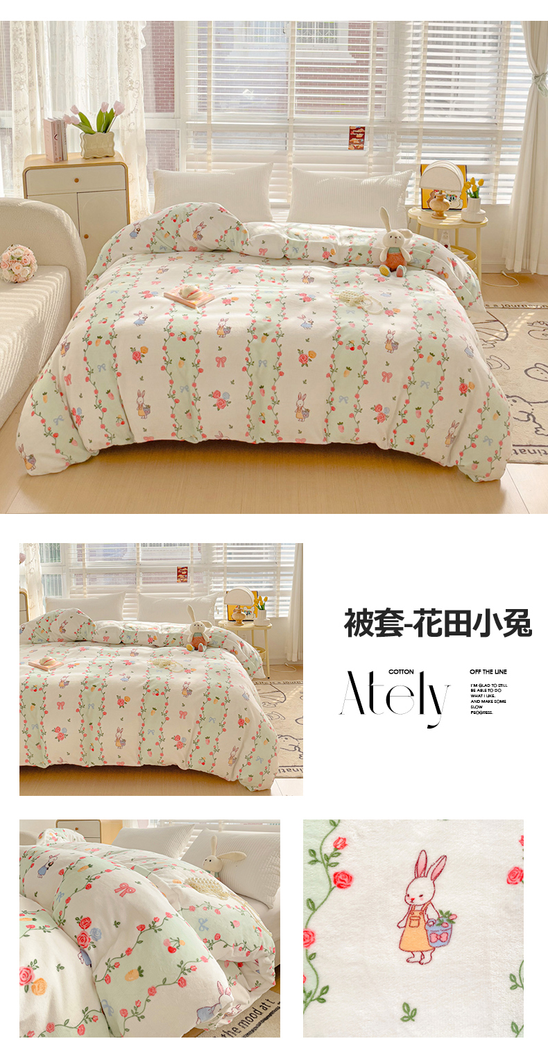 雅萱家纺 2024新款牛奶绒单被套 被套-花田小兔