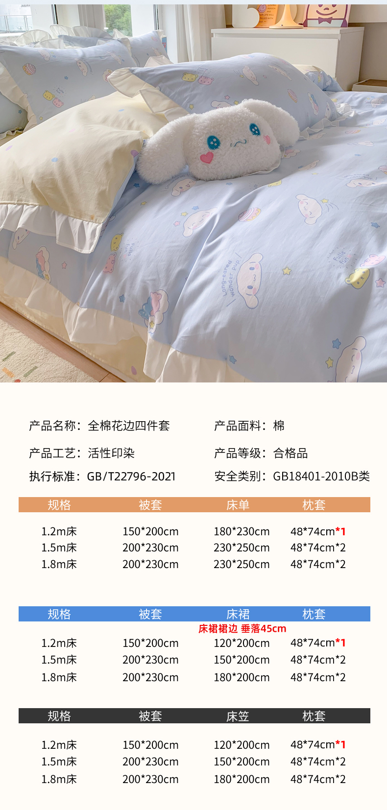 当前位置: 91家纺网 > 商品网购 > 床品套件 > 四件套 > 全棉普通四件套 > 玉元坊 2025新款三丽鸥系列白花边被套纯棉全棉床裙三件套四件套-大耳狗白花边款式 云朵大耳狗【花边款】