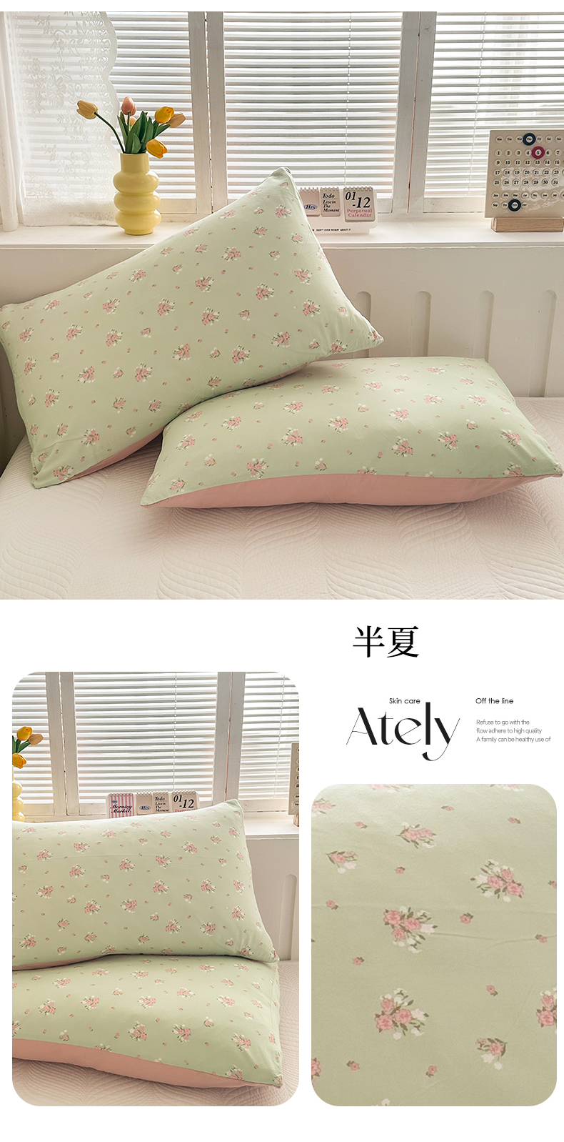 商品名称:多品家纺 2025新款花卉系列超柔水洗棉枕套 半夏