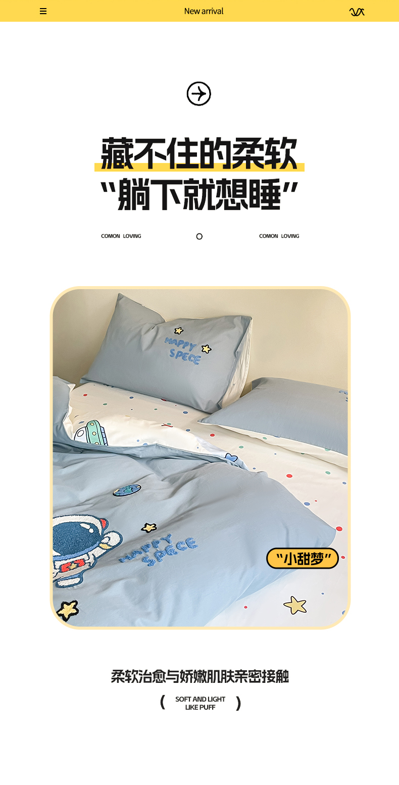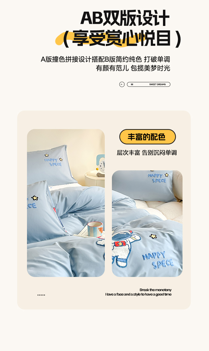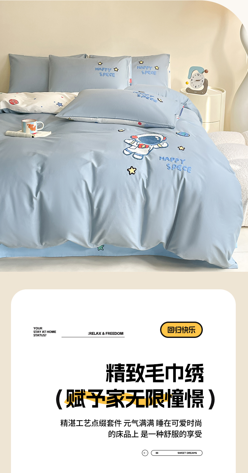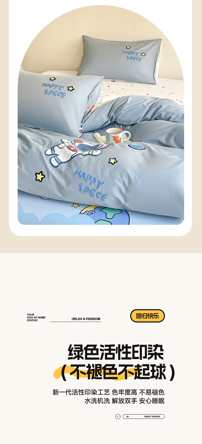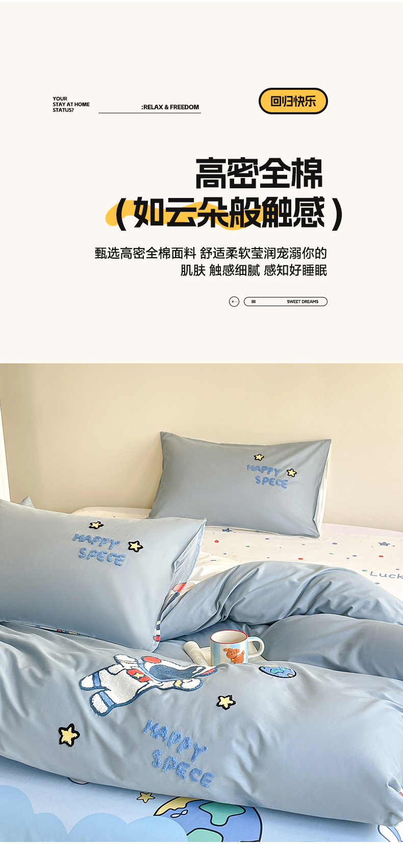 商品名称:沐辰 2025新款全棉13372印加绣四件套 快乐宇航员