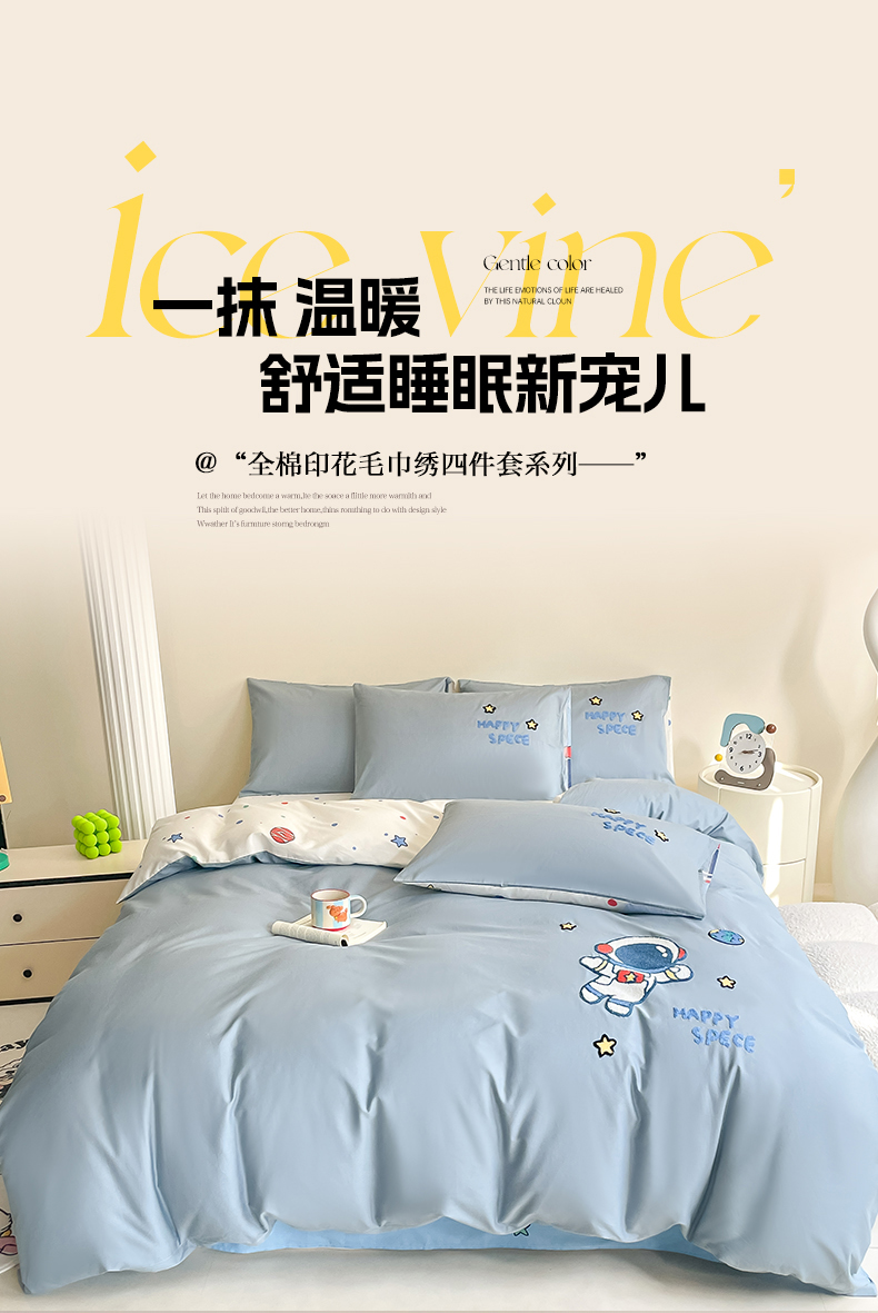 沐辰 2025新款全棉13372印加绣四件套 快乐宇航员
