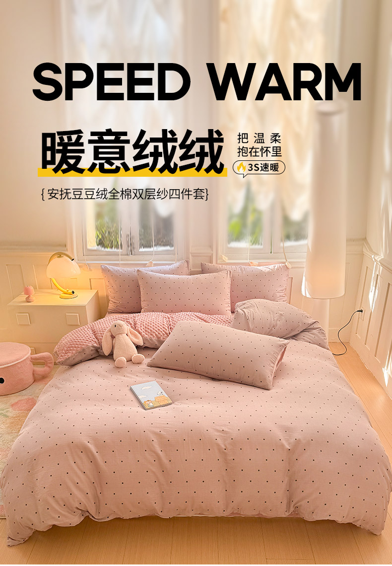 千朵 2025新款豆豆绒双层纱四件套 芋泥波波