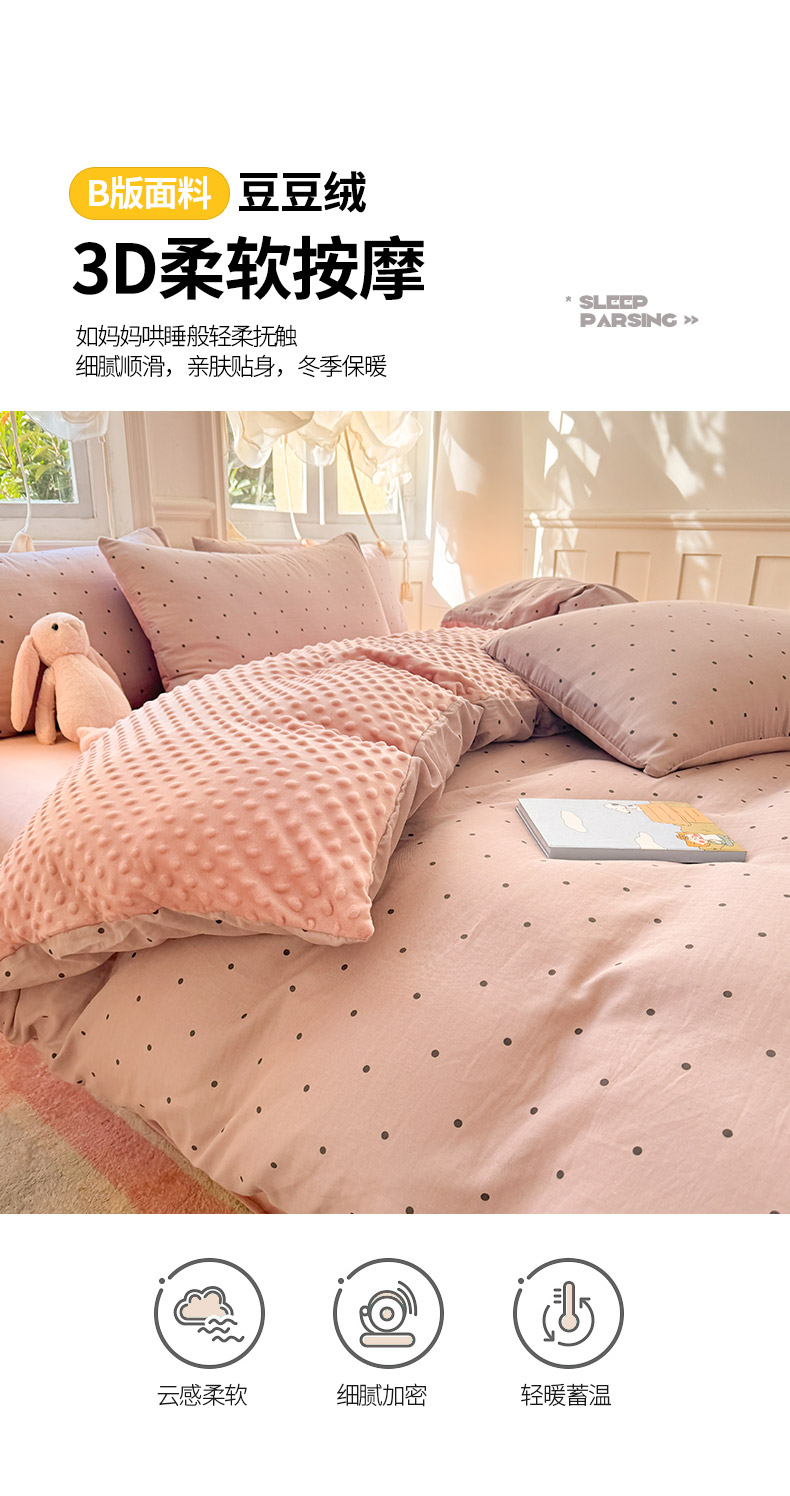 商品名称:千朵 2025新款豆豆绒双层纱四件套 芋泥波波