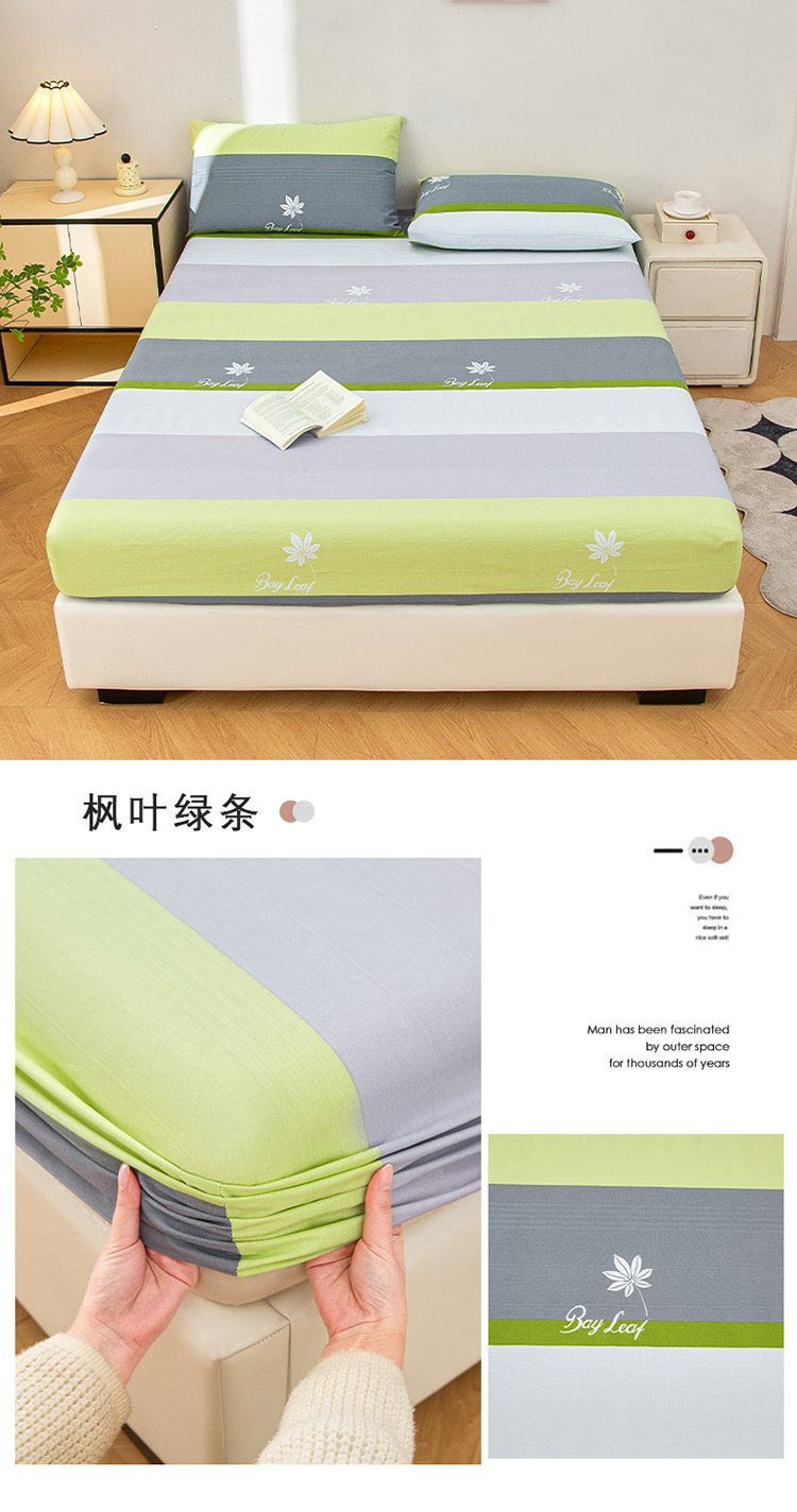 金泰莱 2025新款五幅段床笠 枫叶绿条