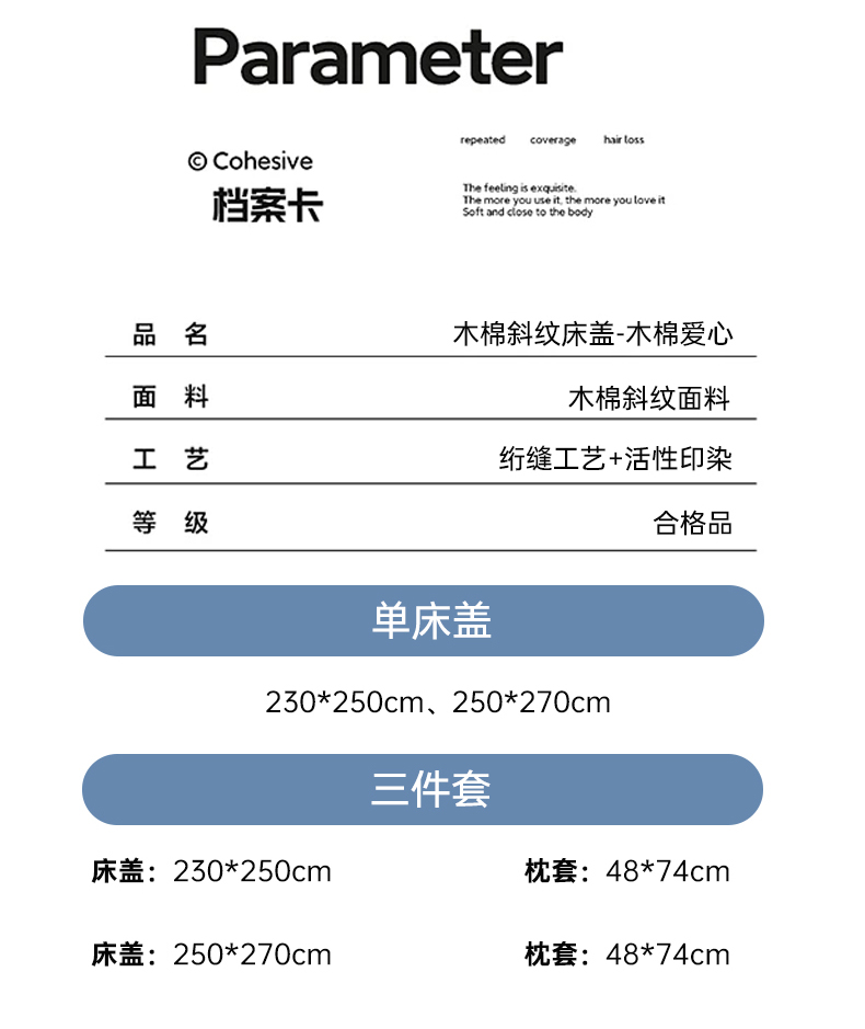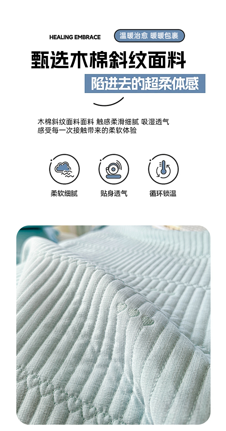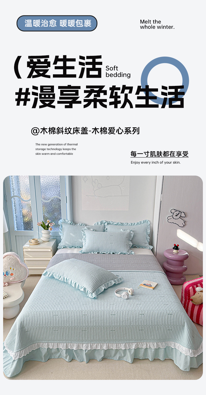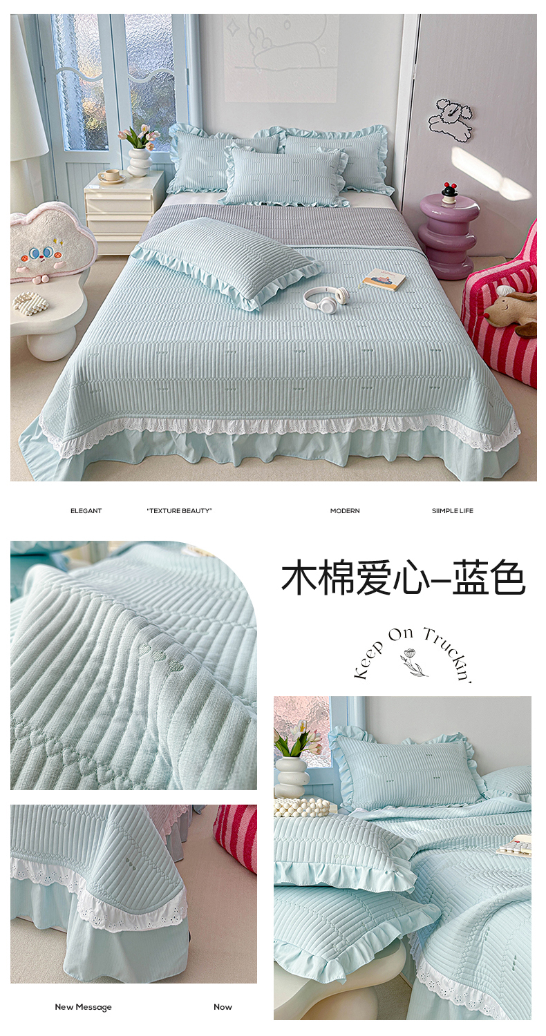 商品名称:源舜家纺 2025新款木棉斜纹床盖三件套-木棉爱心 云感爱心-蓝色