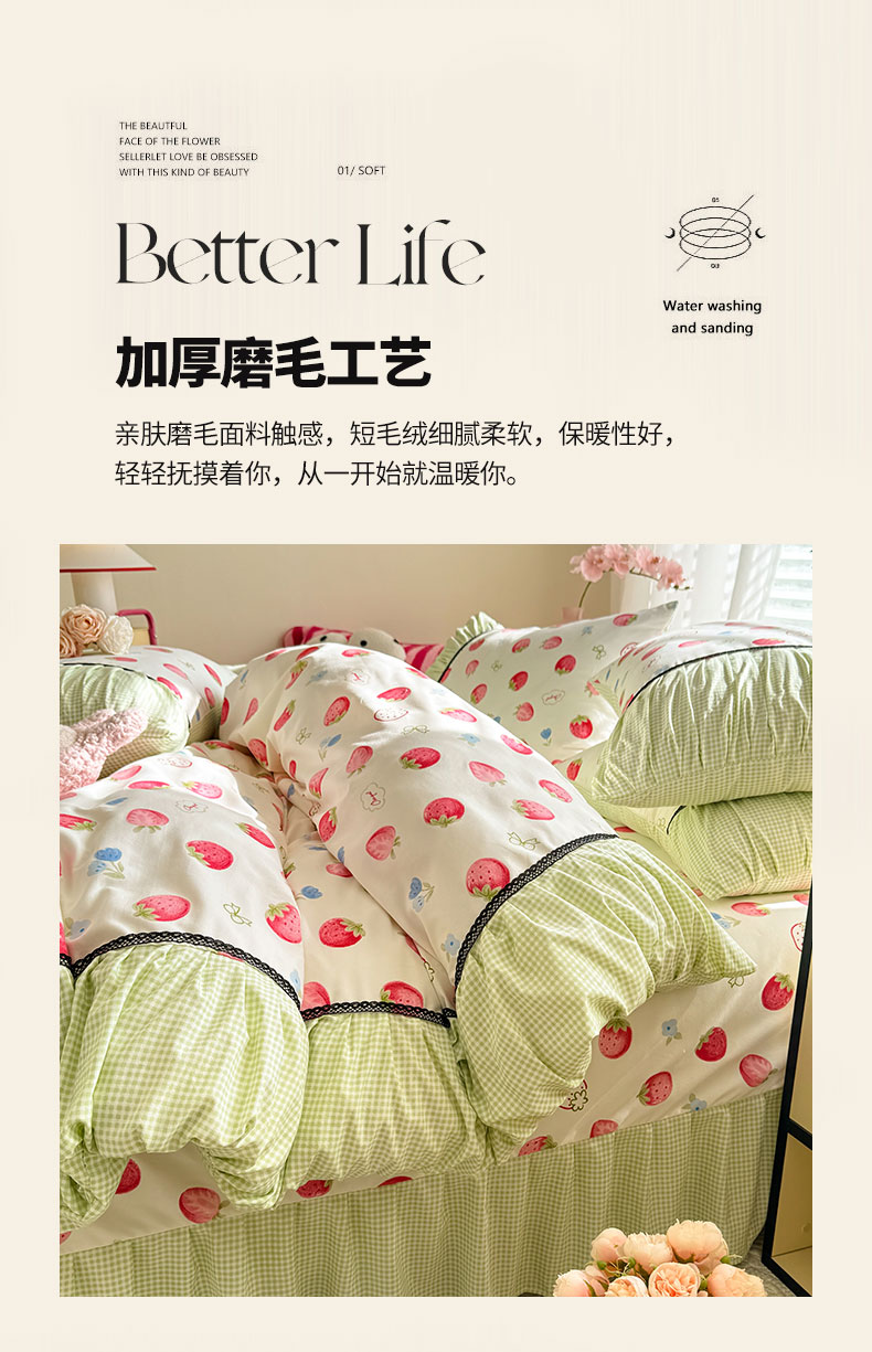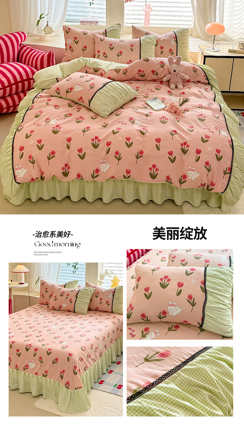 (总)芭比蔓家纺 2025新款亲肤磨毛法式浪漫四件套-依恋,依恋-粉色,依恋-蓝色,依恋-绿色,依恋-米色,依恋-玉色