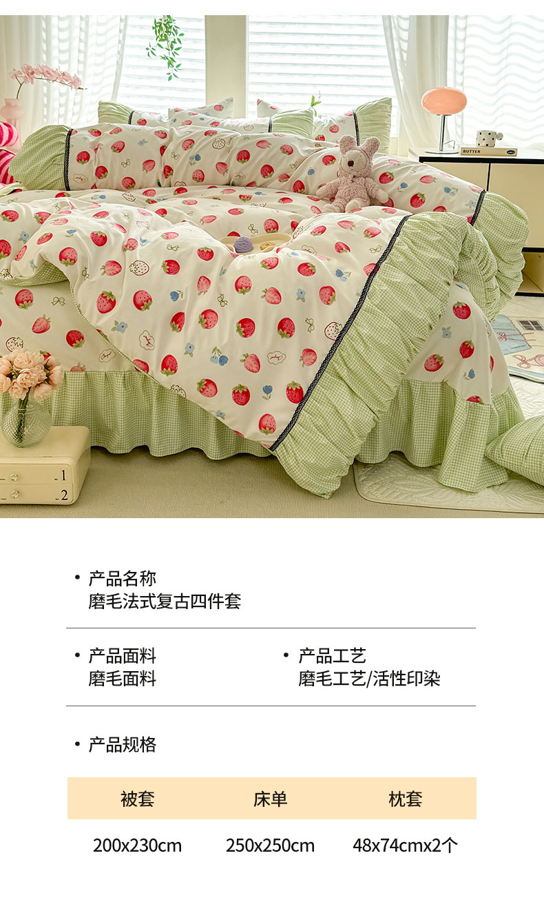 商品名称:芭比蔓家纺 2025新款磨毛法式浪漫复古四件套 美丽绽放