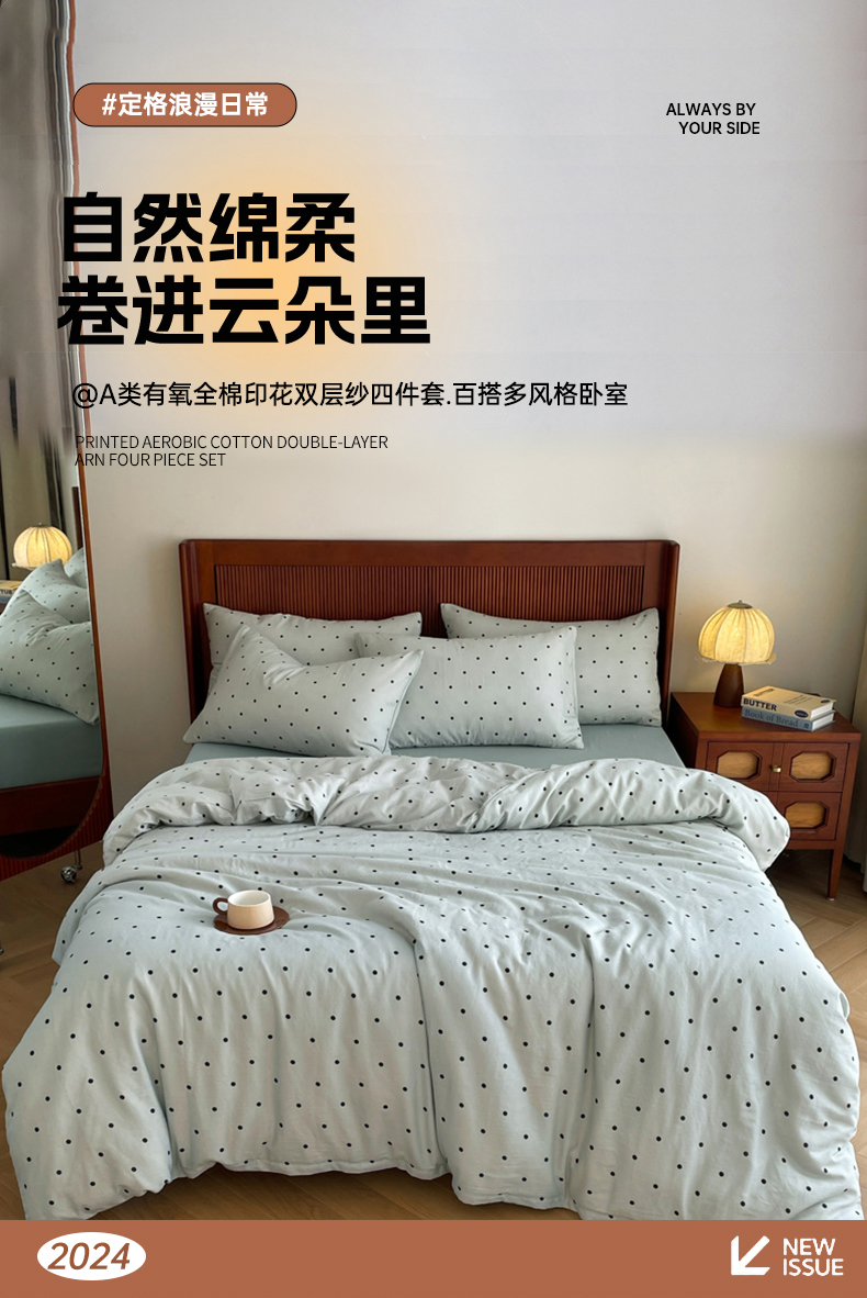 仟网汇 2025新款有氧全棉双层纱四件套 抹茶啵啵