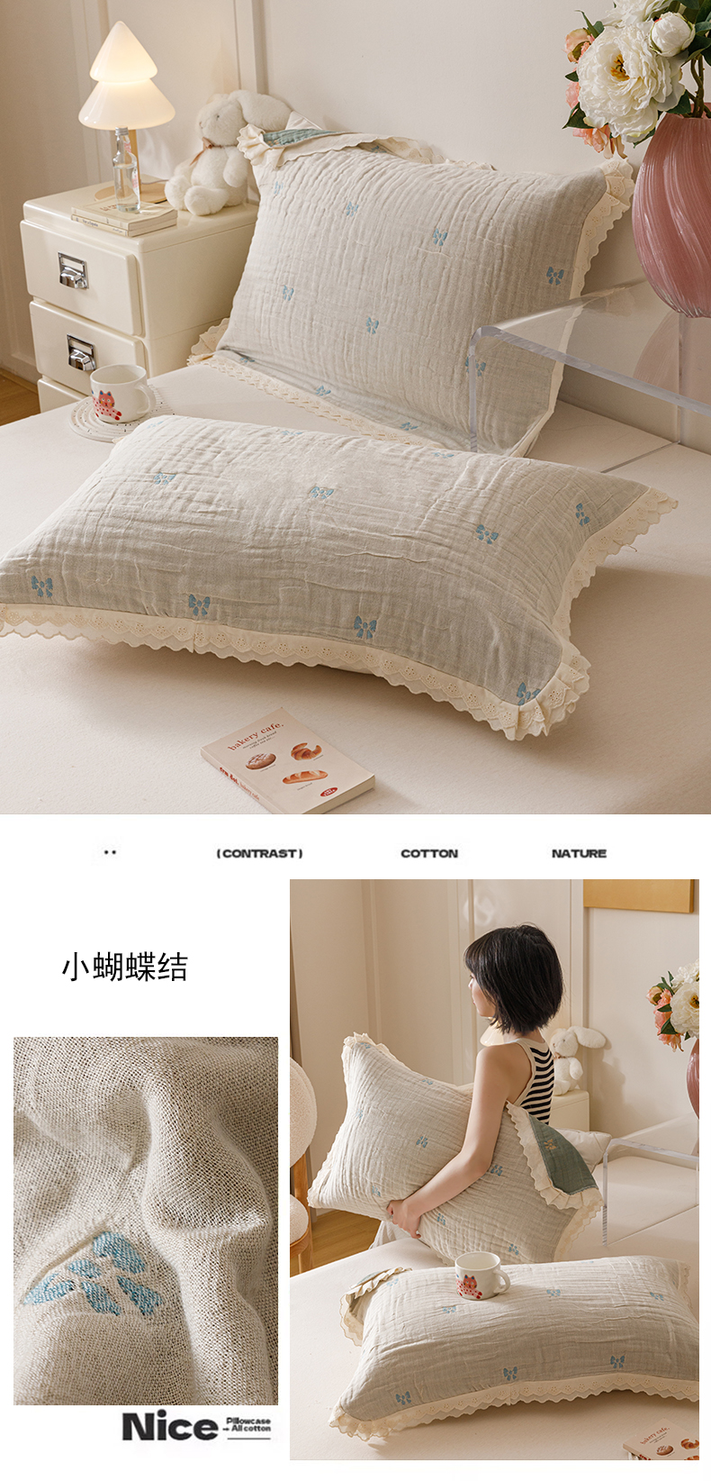 (总)麻依 2025新款安心棉枕套四层纱布枕套,组合图仅供展示不可下单,彩虹点点,点点蝴蝶结-白,点点蝴蝶结-粉,搞怪猫,韩系小樱桃,焦糖草莓,兰溪,漫语,梅屿-绿,梅屿-驼,木栖,小波点,伊慕,樱桃红了