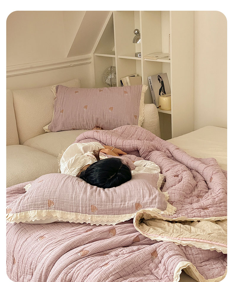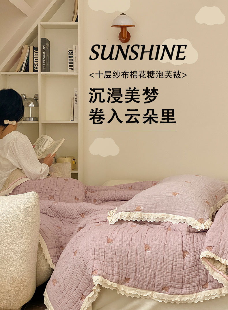 商品名称:麻依 2025新款十层纱布棉花糖春秋被被子泡芙被 奶油草莓