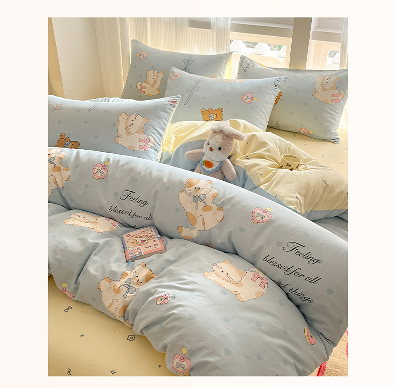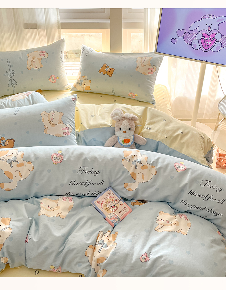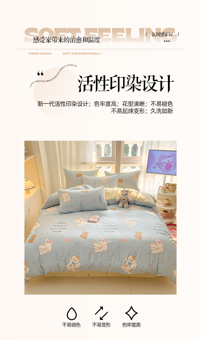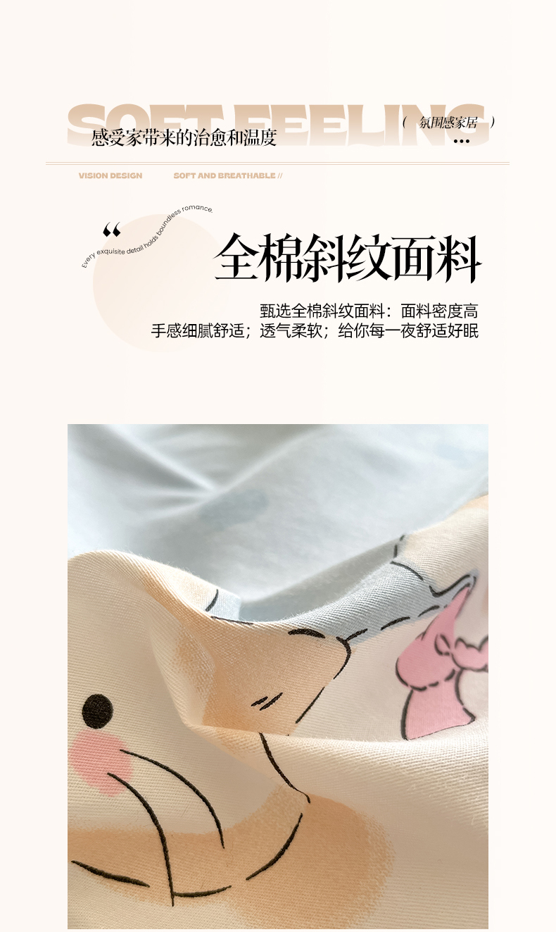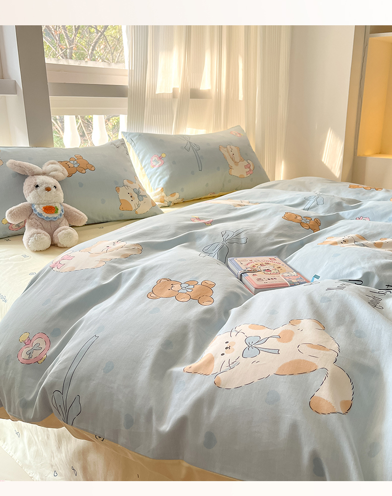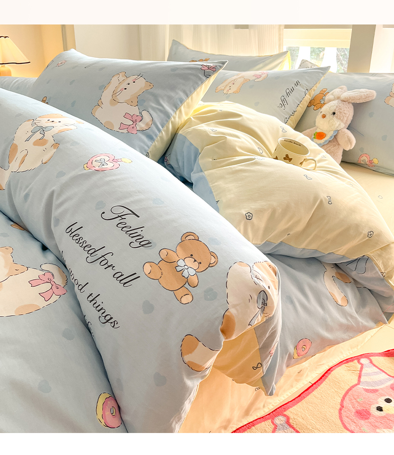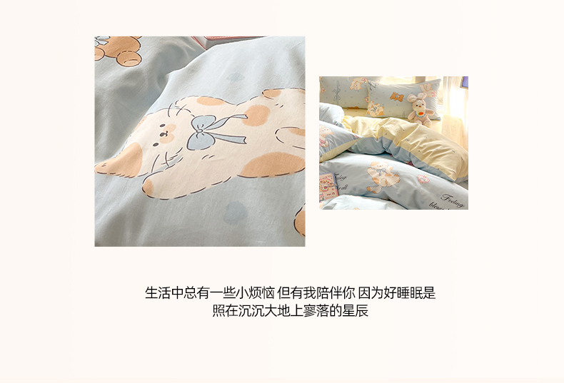 (总)吉象家纺 2025新款12868全棉印花单被套,蓝色泡芙狗,蘑菇小兔,奶油甜心熊,碎花狗狗,碎花小兔,爪爪会客厅