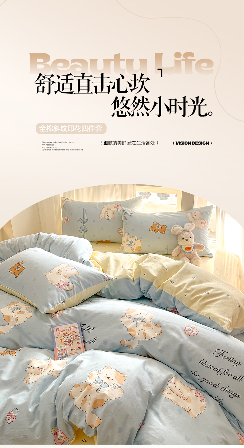 吉象家纺 2025新款全棉斜纹印花四件套 班尼