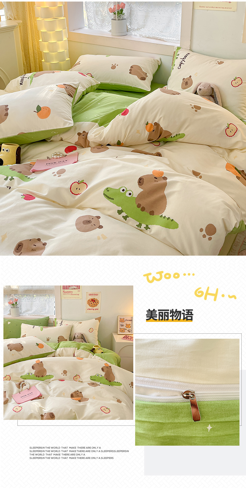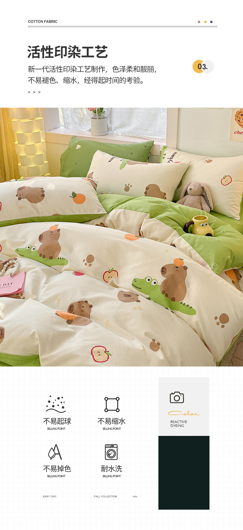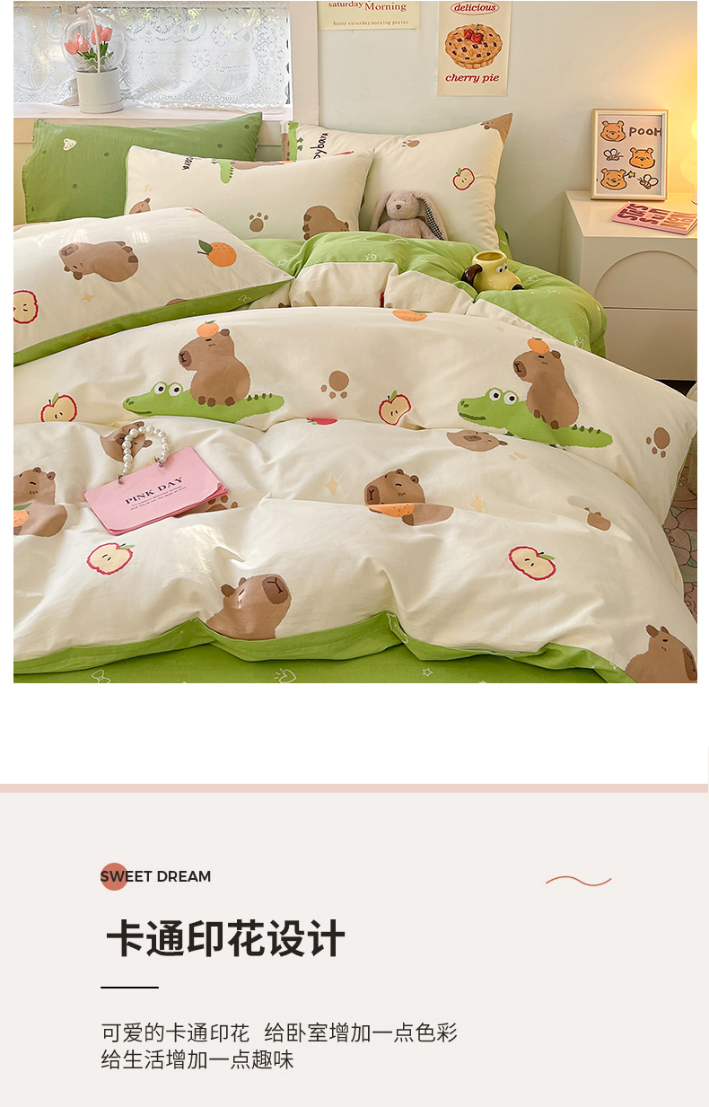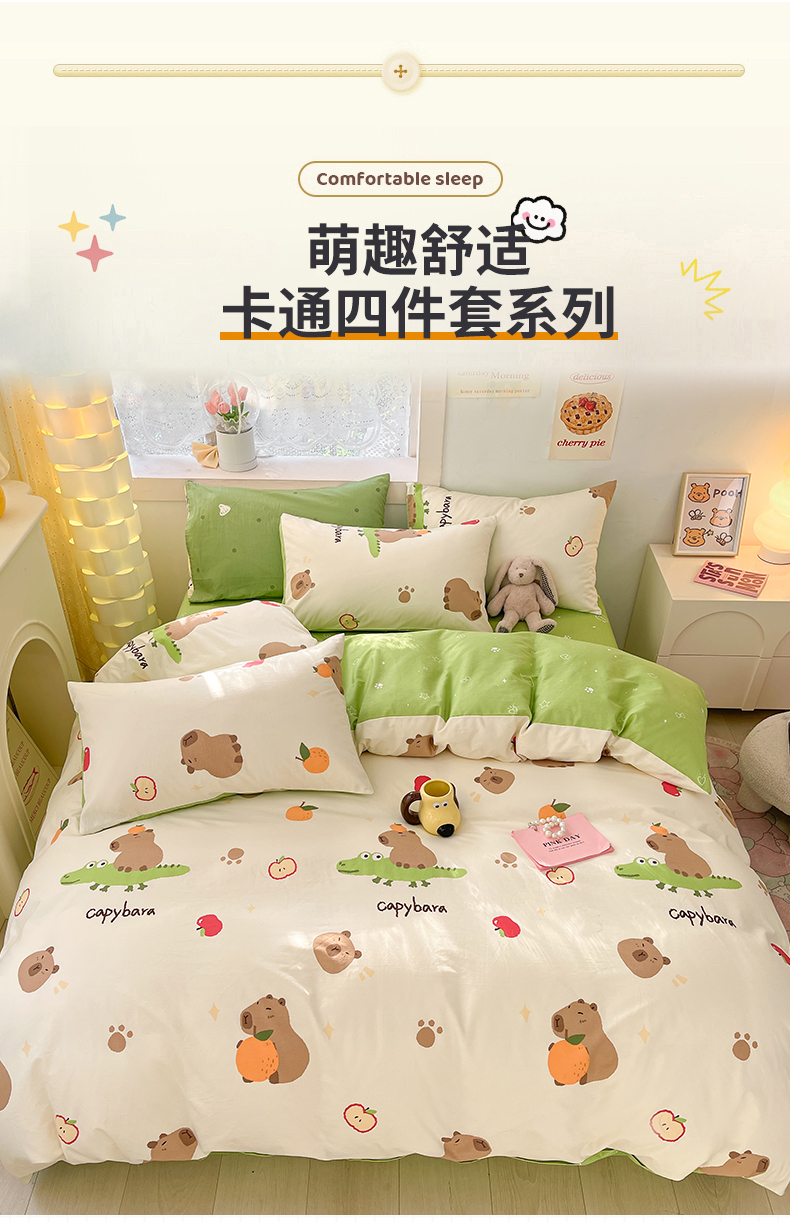 吉象家纺 2025新款全棉斜纹印花四件套 卡皮巴拉