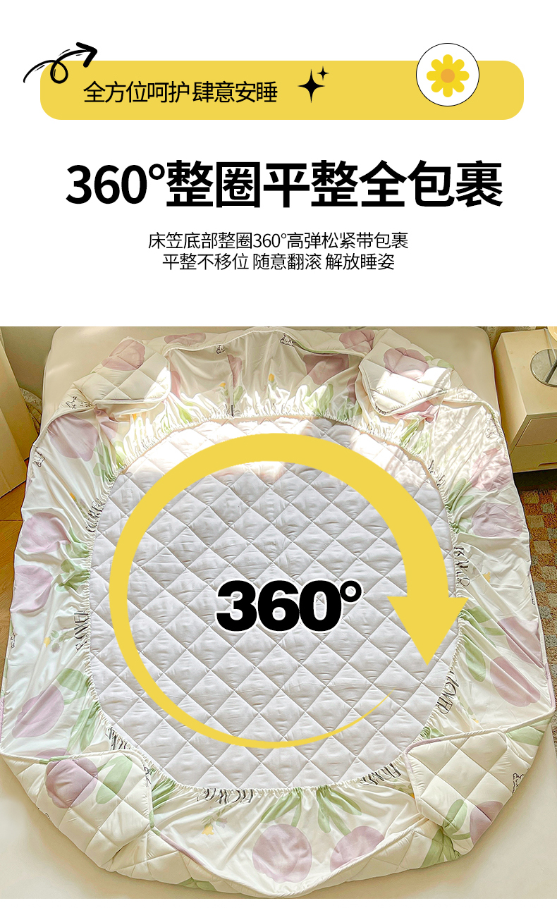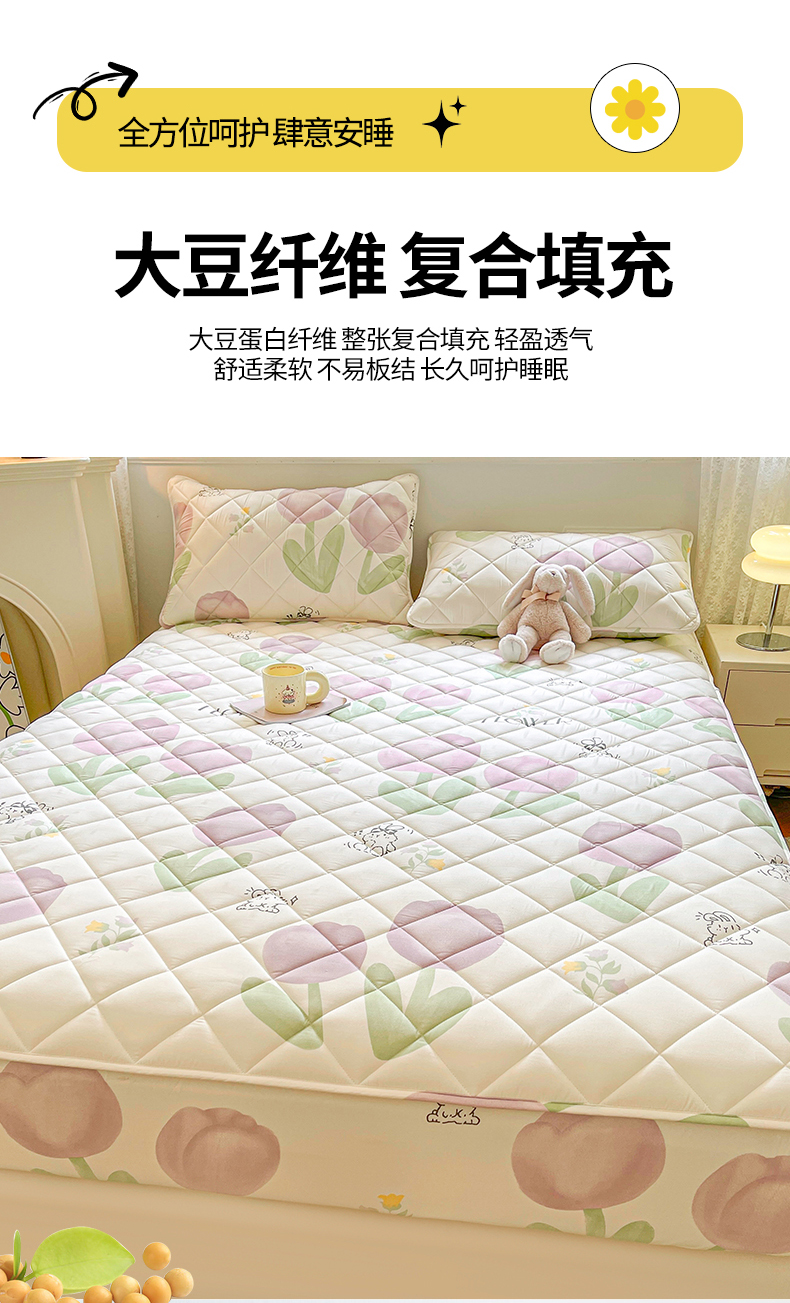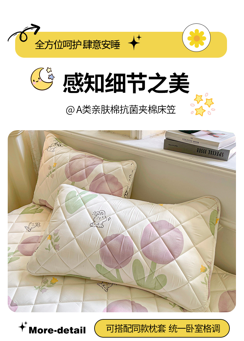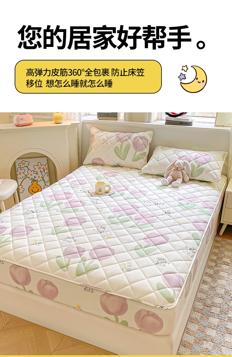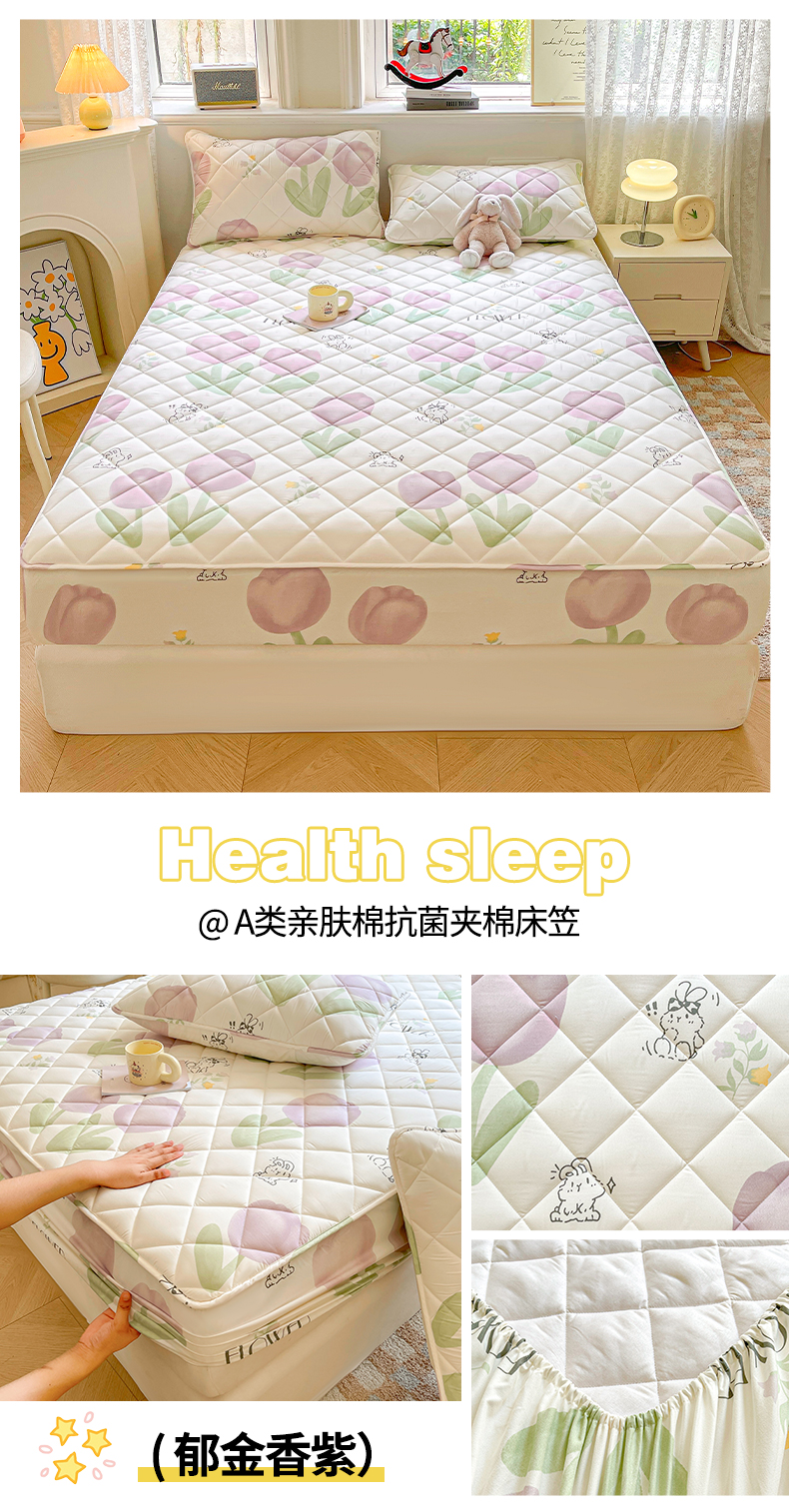 居眠 2025新款A类亲肤棉抗菌印花夹棉床笠 郁金香紫