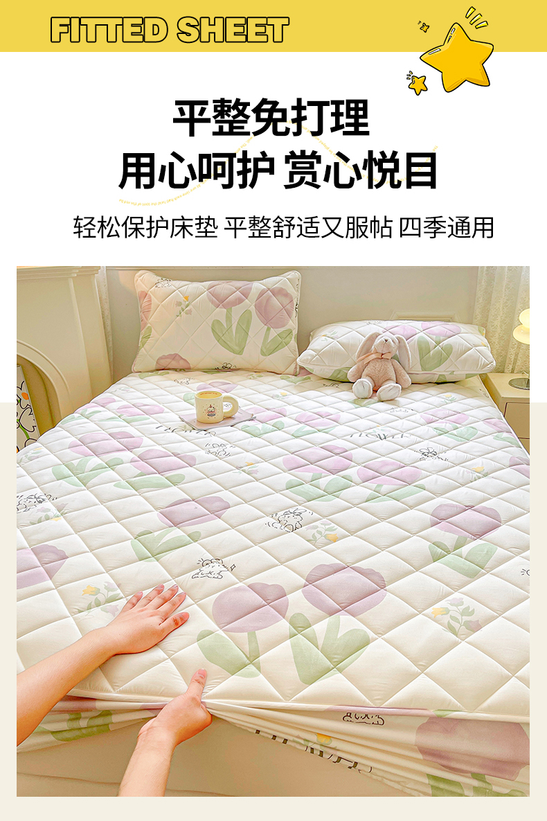 • 91家纺网 家纺一手货源 找家纺 居眠 2025新款A类亲肤棉抗菌印花夹棉床笠 郁金香紫