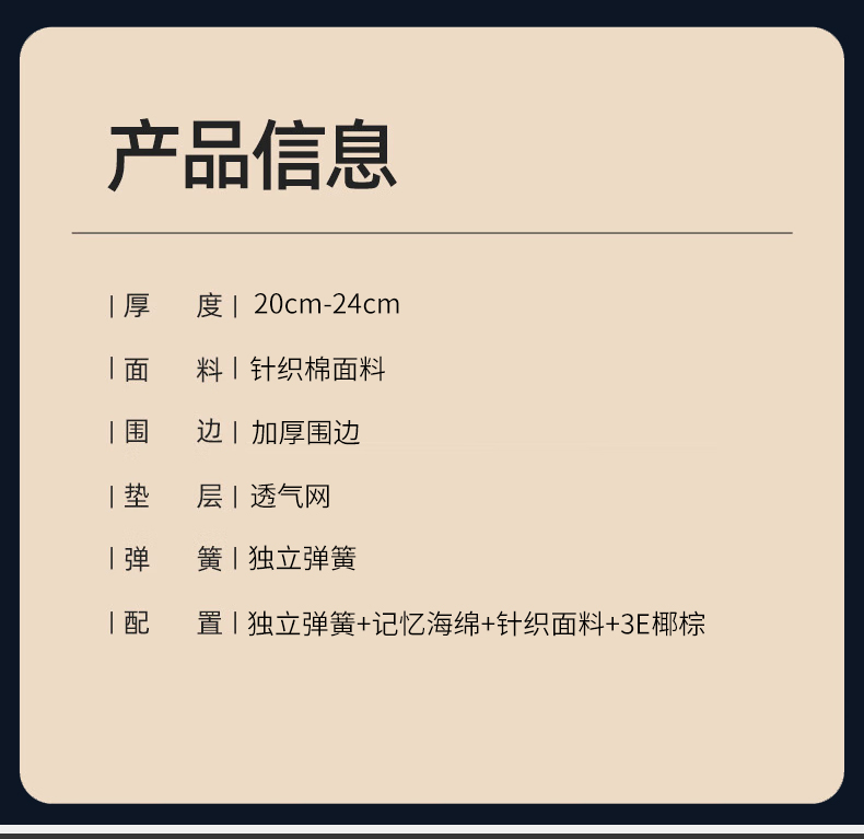商品名称:(总)2025新款针织面料加厚围边独立弹簧床垫