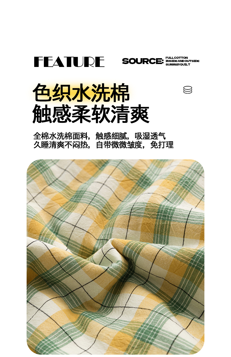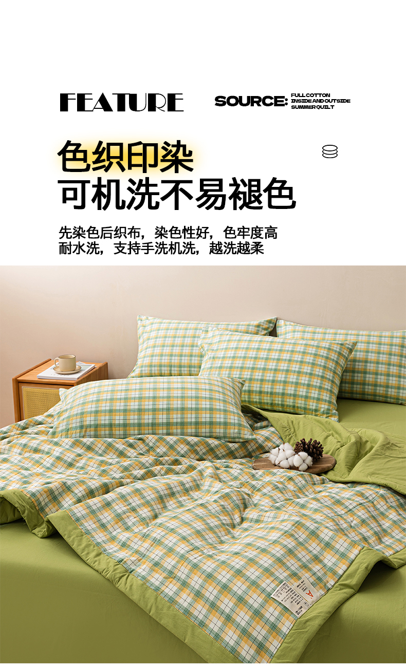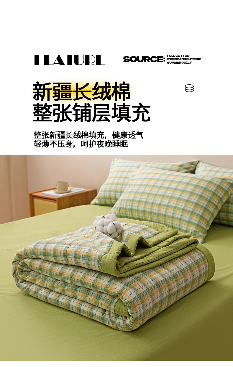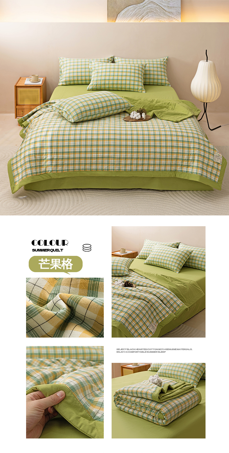 2025新款a类里外全棉色织水洗棉棉花夏被 被子被芯 芒果格