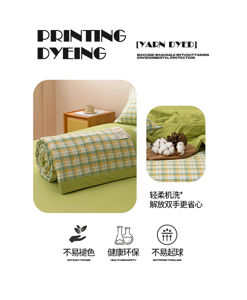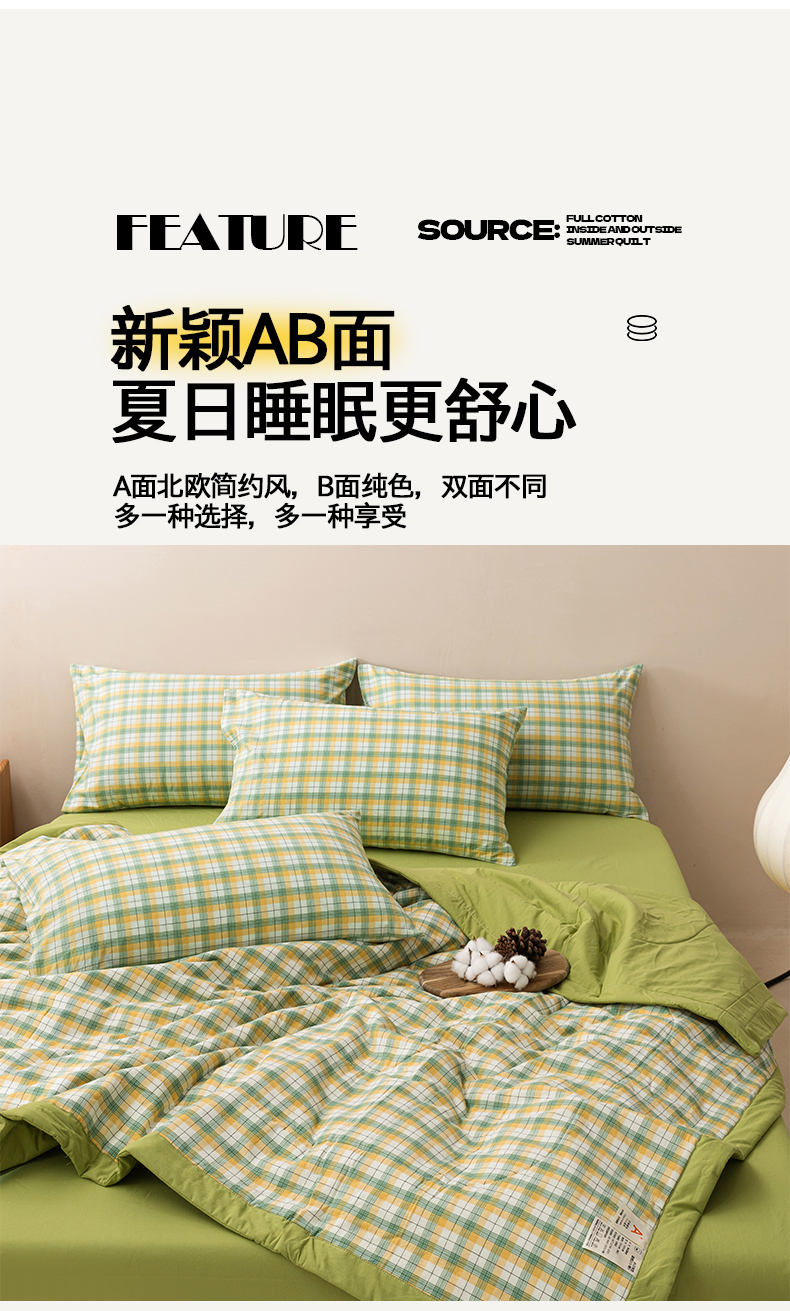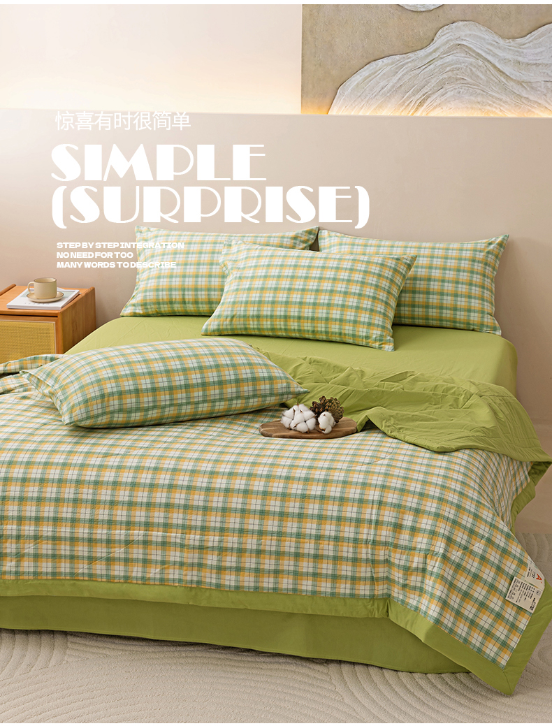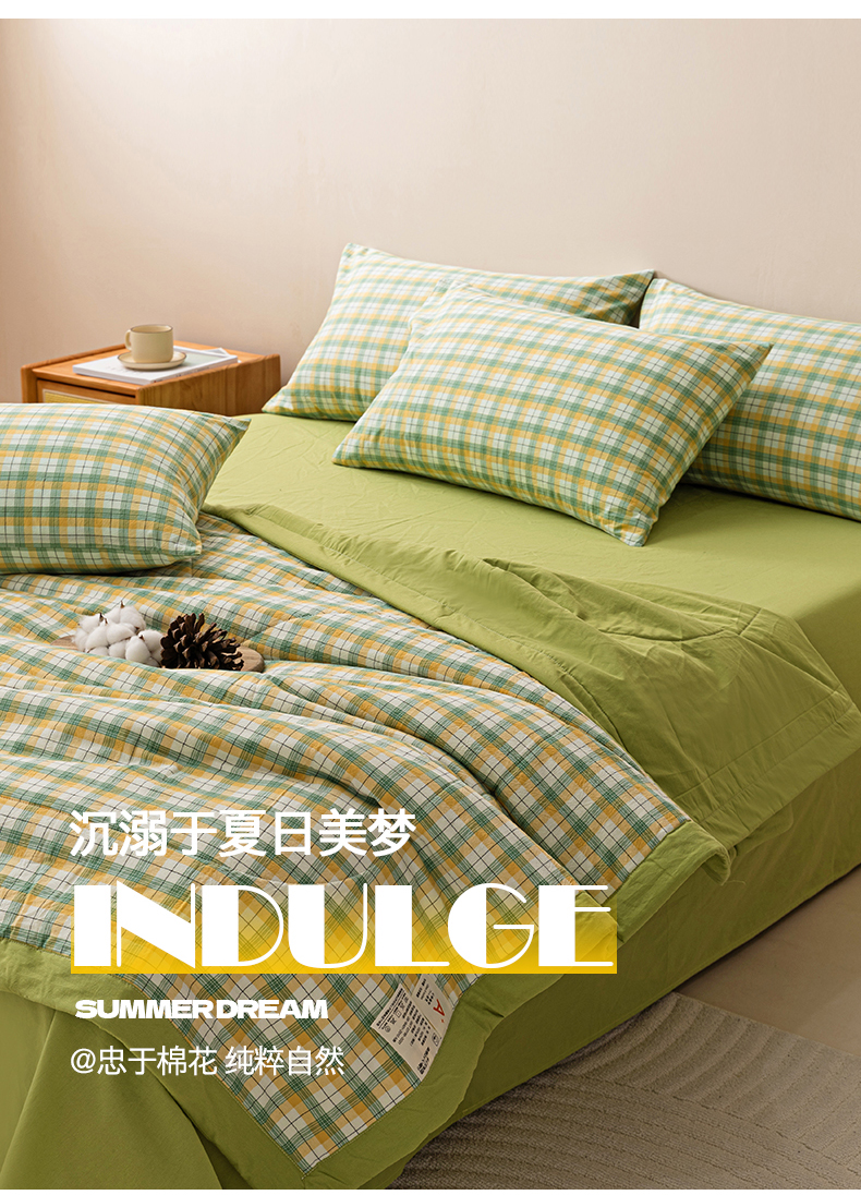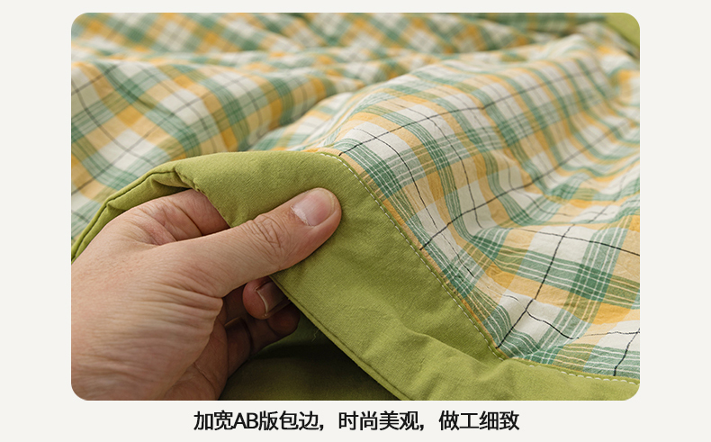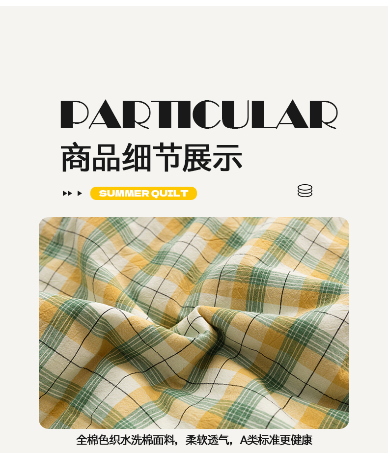 2025新款a类里外全棉色织水洗棉棉花夏被 被子被芯 芒果格