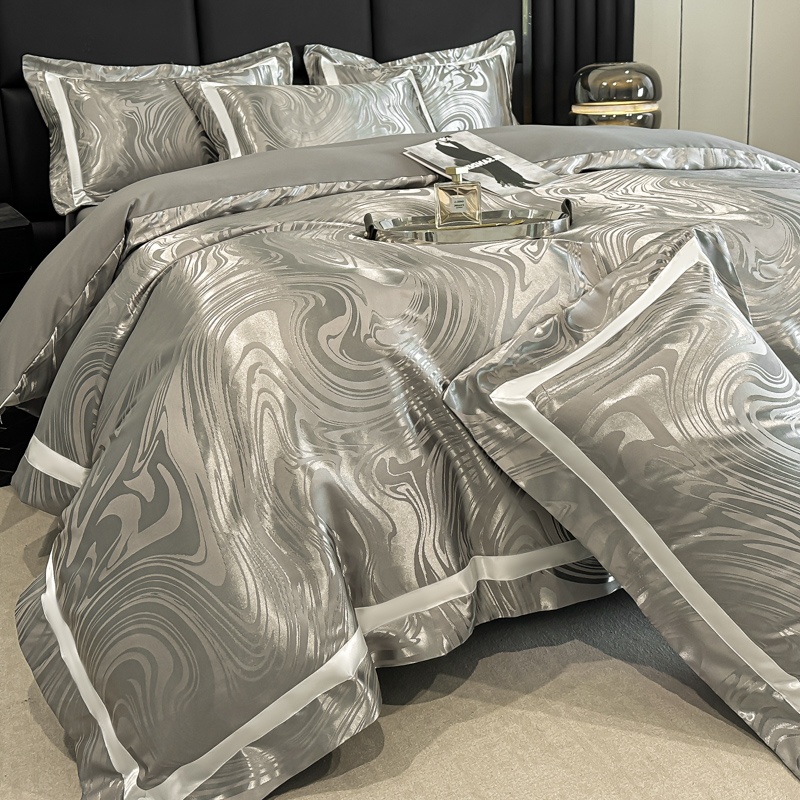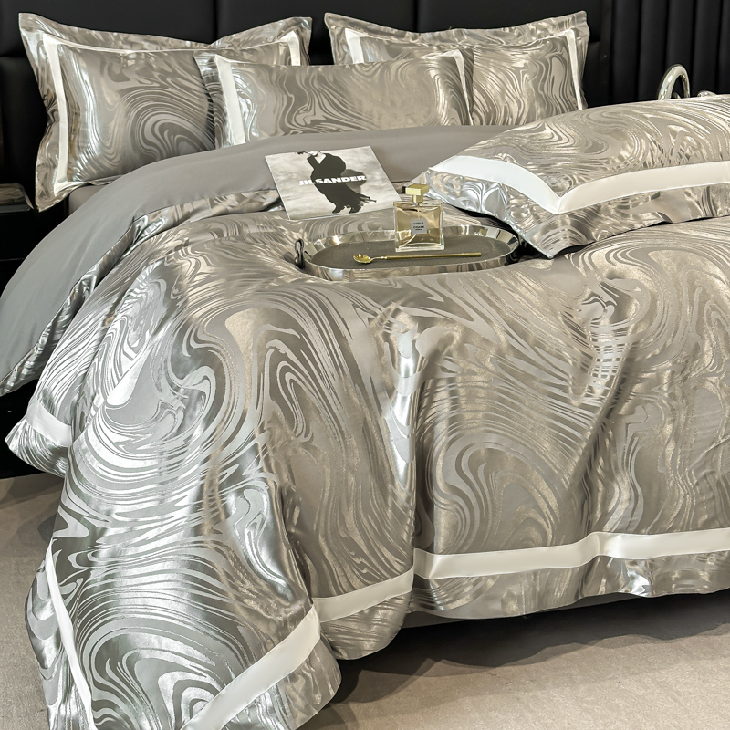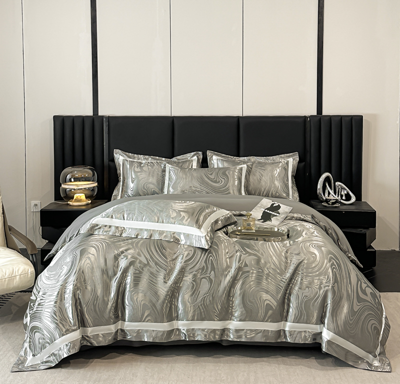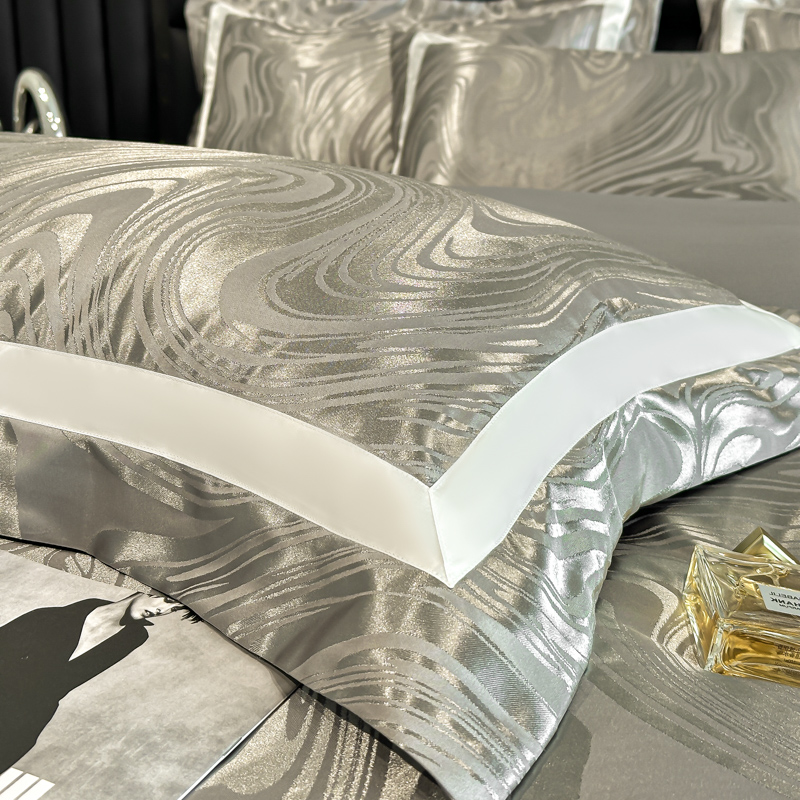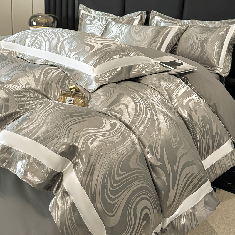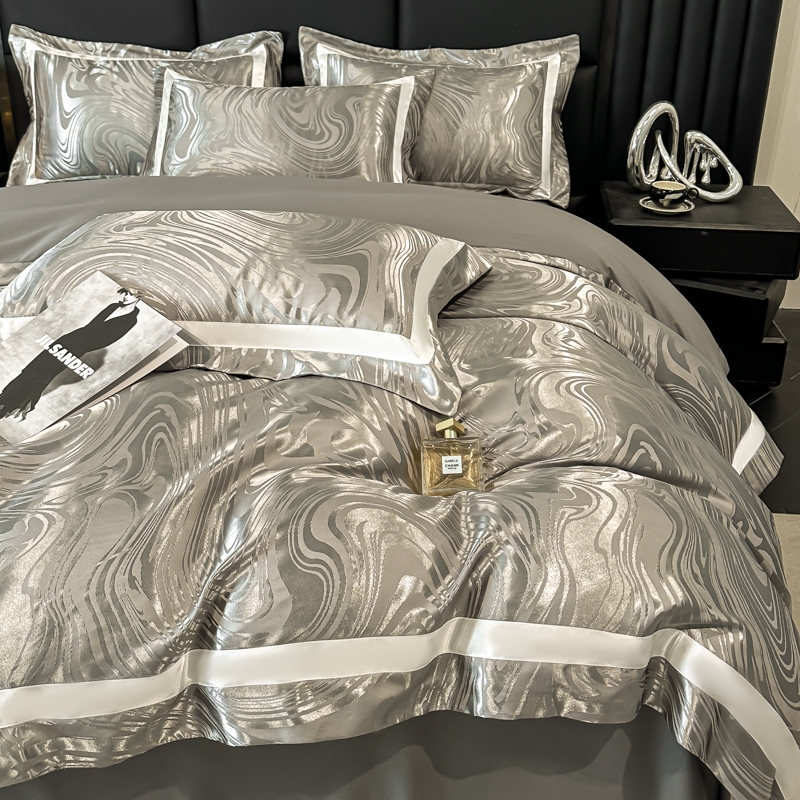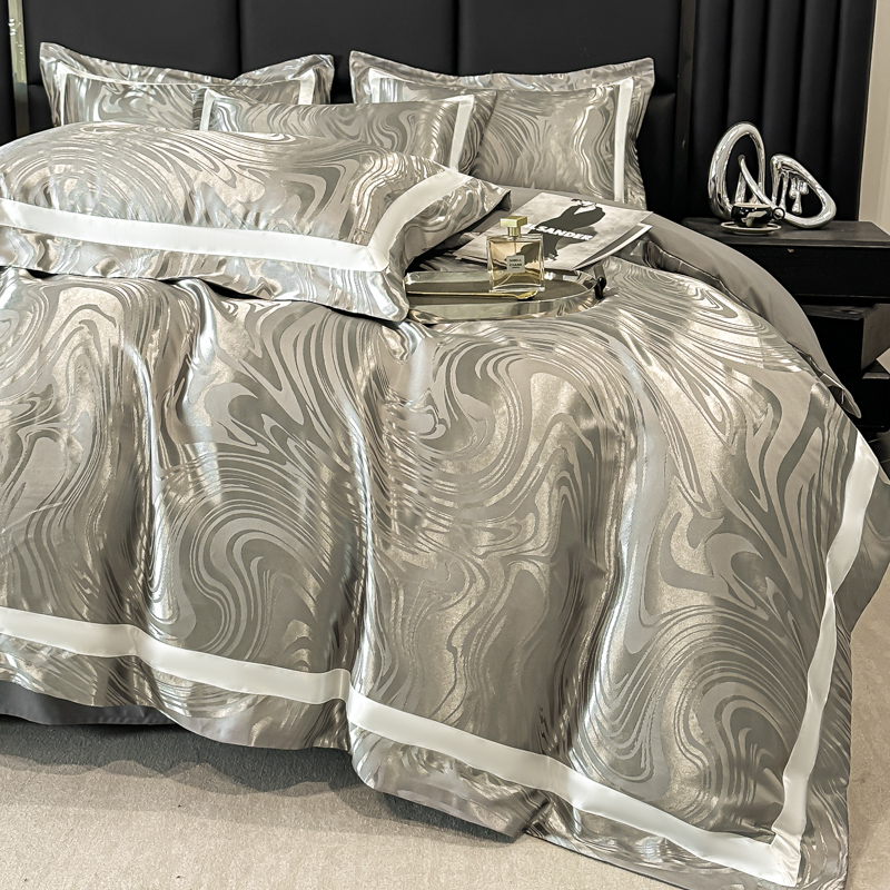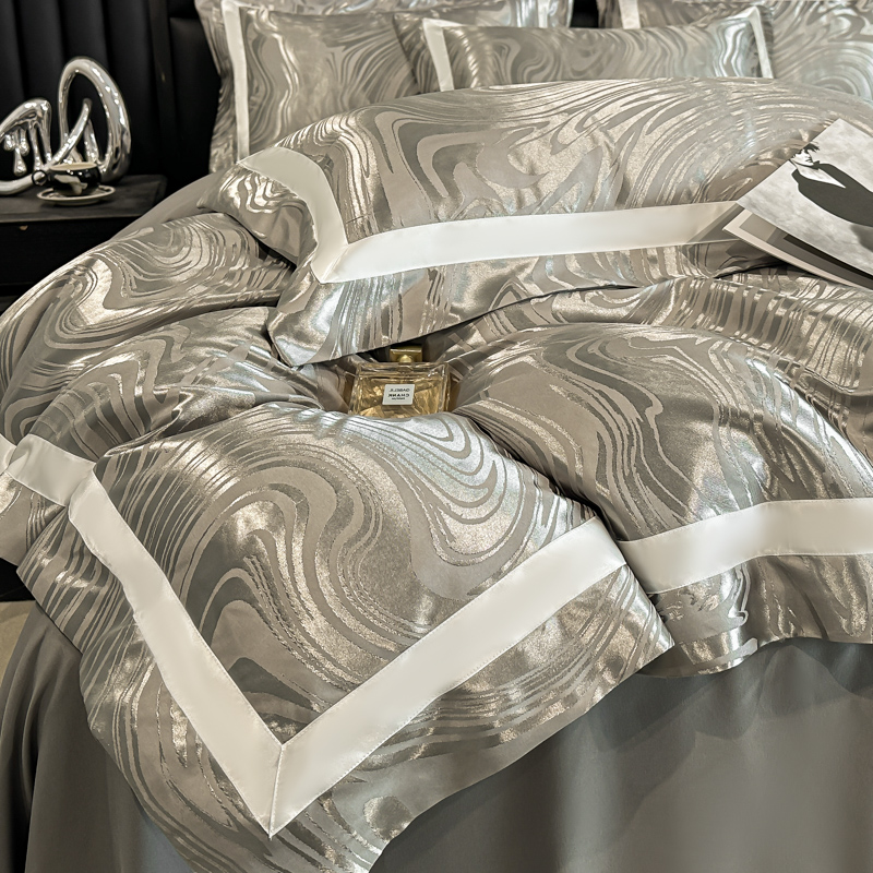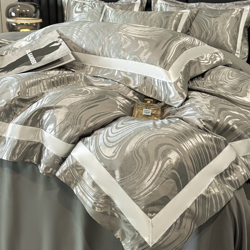 (总)博纳家纺 2025新款镂空大宽边拼角高级简奢款亲肤棉四件套-山水提花,繁星蓝,粉玉,高级灰,香槟,象牙白