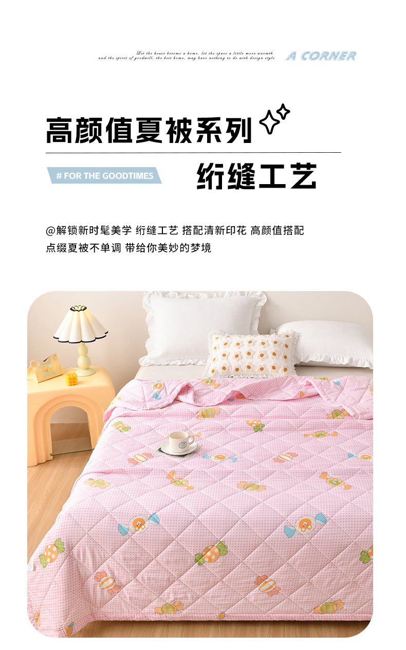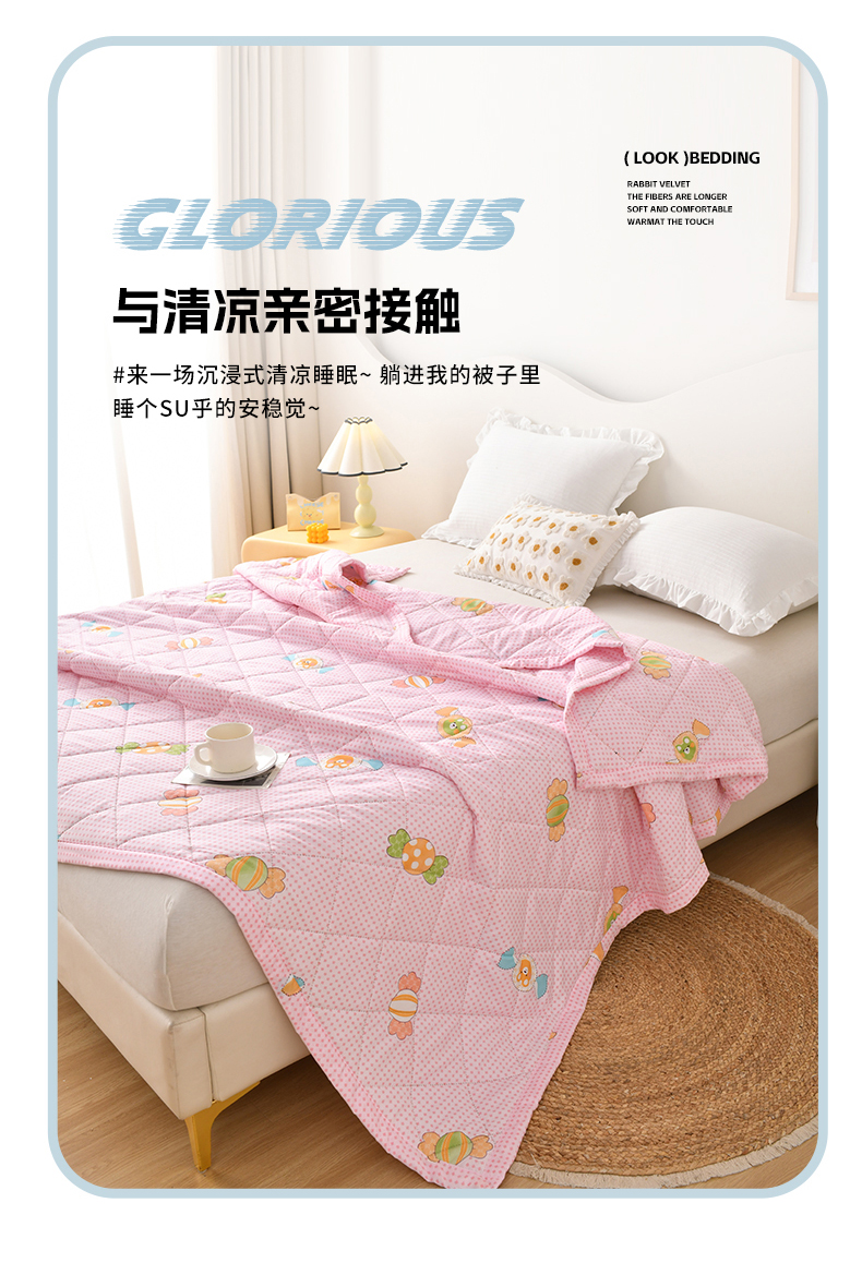 商品名称:培童 2025新款超声波亲肤绒夏被夏凉被直播爆款超声波夏被空调被礼品被 糖果粉