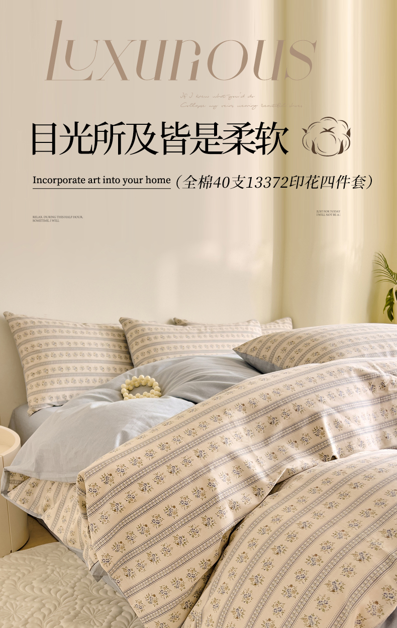 当前位置: 91家纺网 > 商品网购 > 床品套件 > 四件套 > 全棉普通四件套 > DoDo 兜兜 【 可定制尺寸】2025新款全棉40支13372印花四件套 晚风