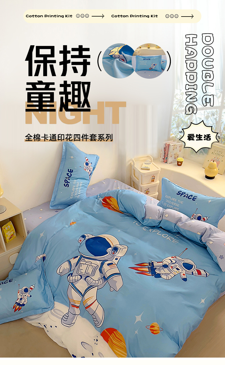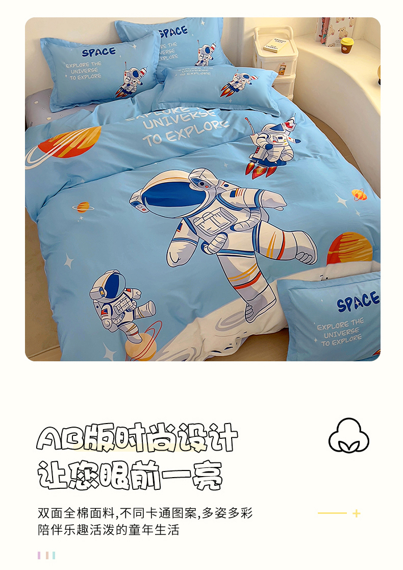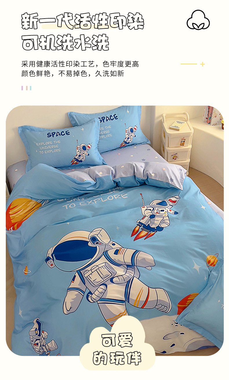 当前位置: 91家纺网 > 商品网购 > 床品套件 > 四件套 > 全棉普通四件套 > 浩诚 2025新款全棉大版卡通太空人宇航员小恐龙小汽车系列纯棉四件套-提供买家秀 太空遨游