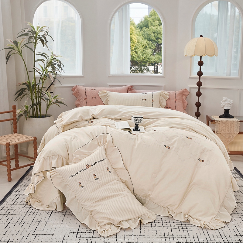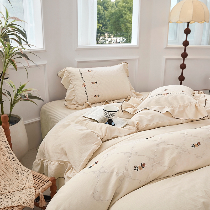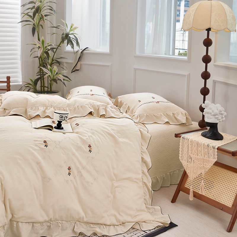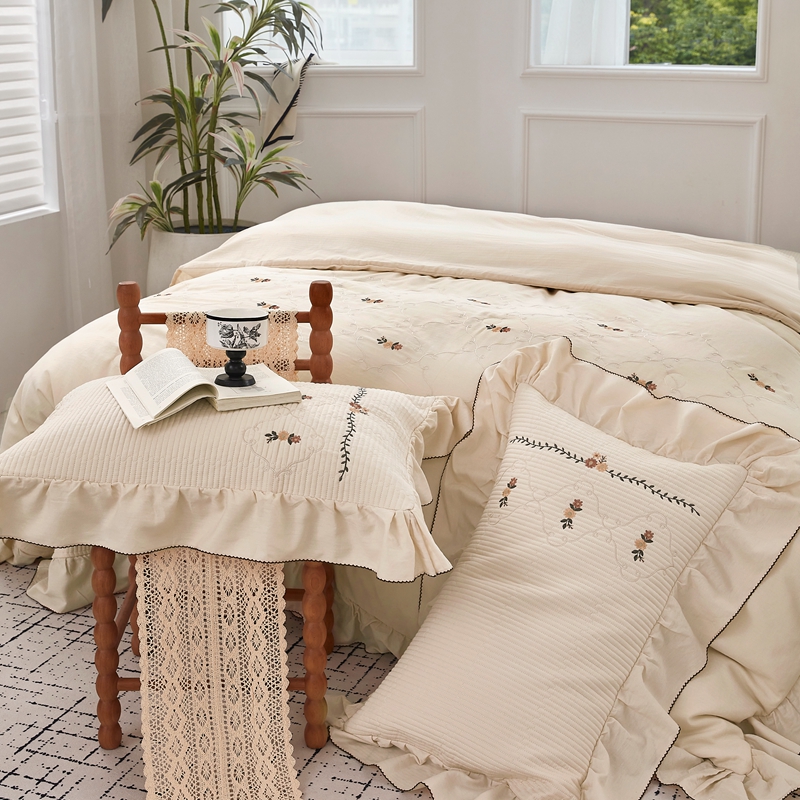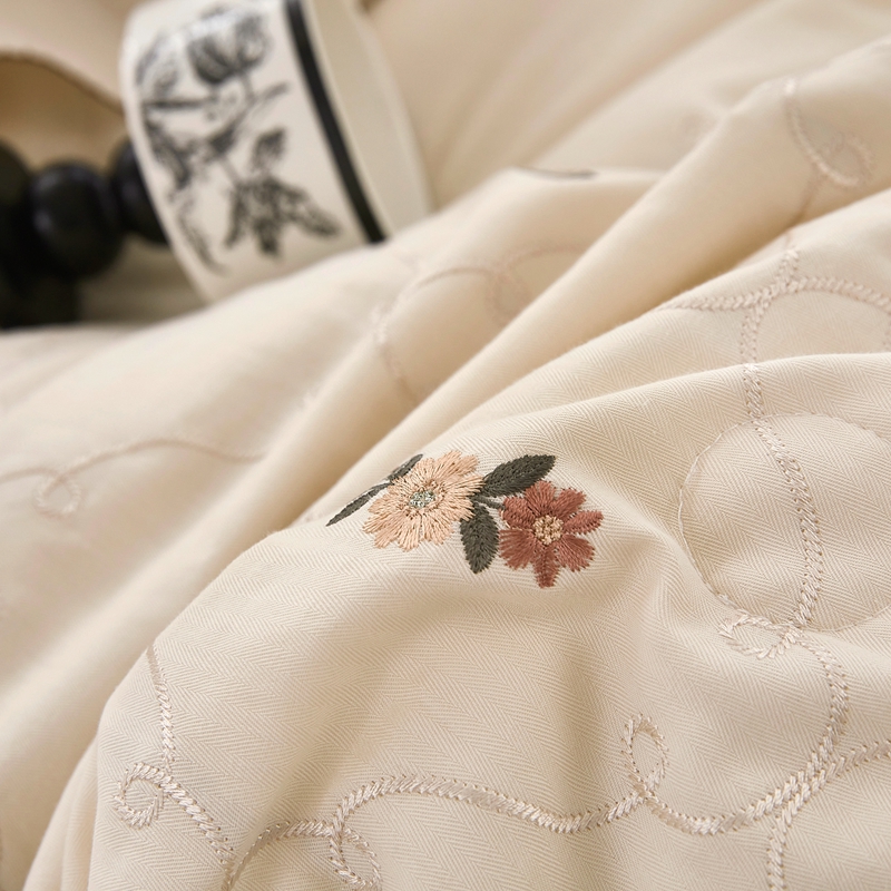 商品名称:上喜 2025新款全棉提花刺绣款床盖四件套 香槟色