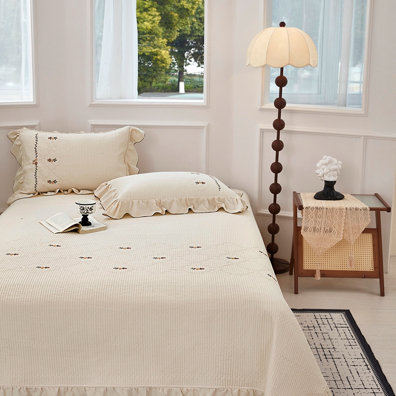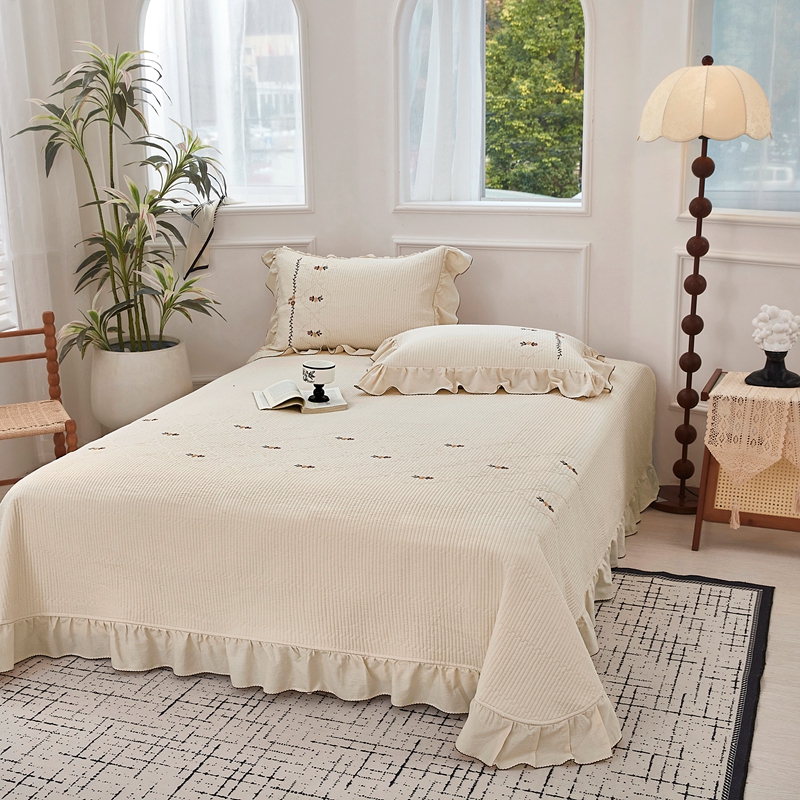 上喜 2025新款全棉提花刺绣款床盖四件套 香槟色